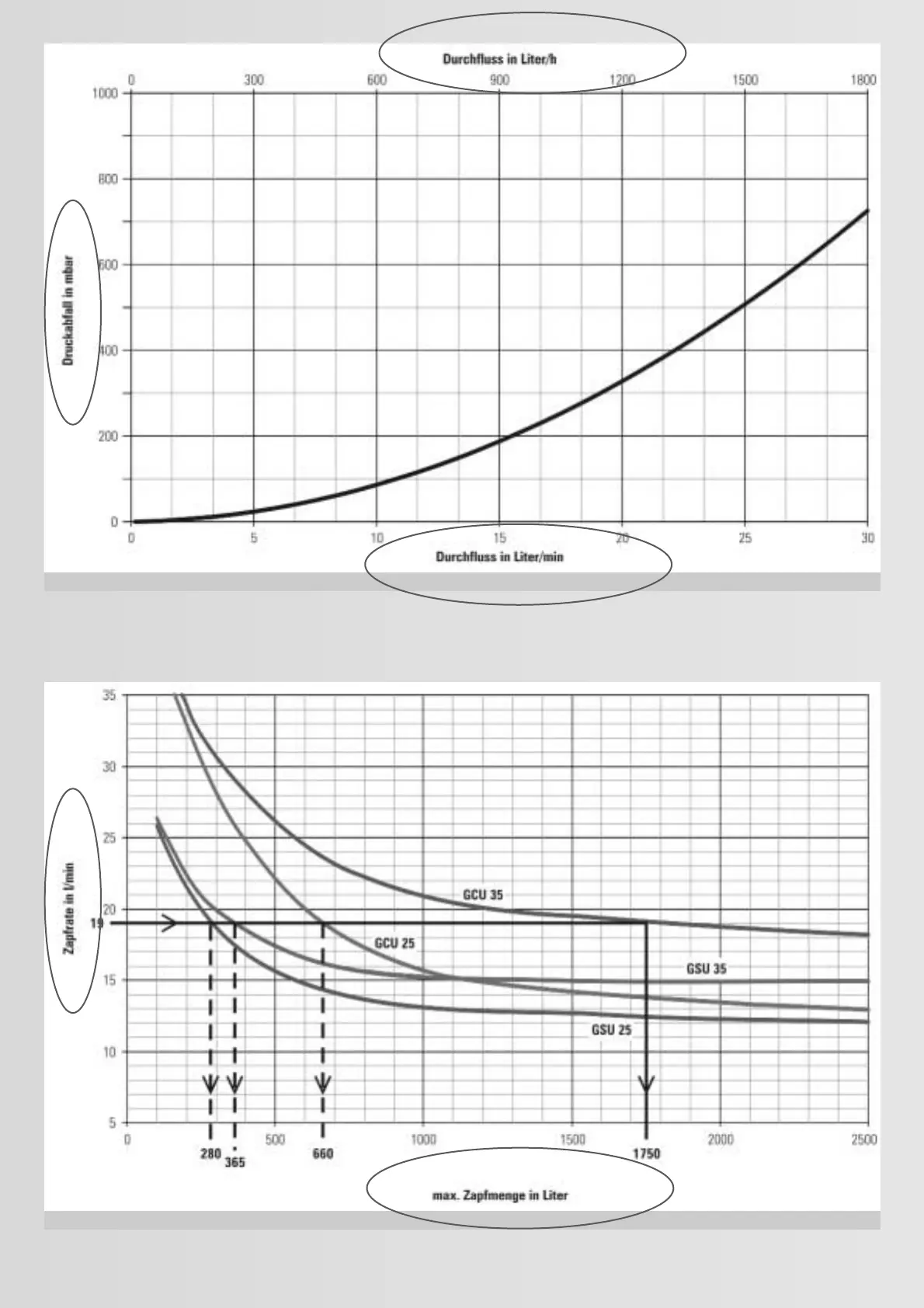 Fig. 8.6: Available draw-off volume subject to the draw-off rate