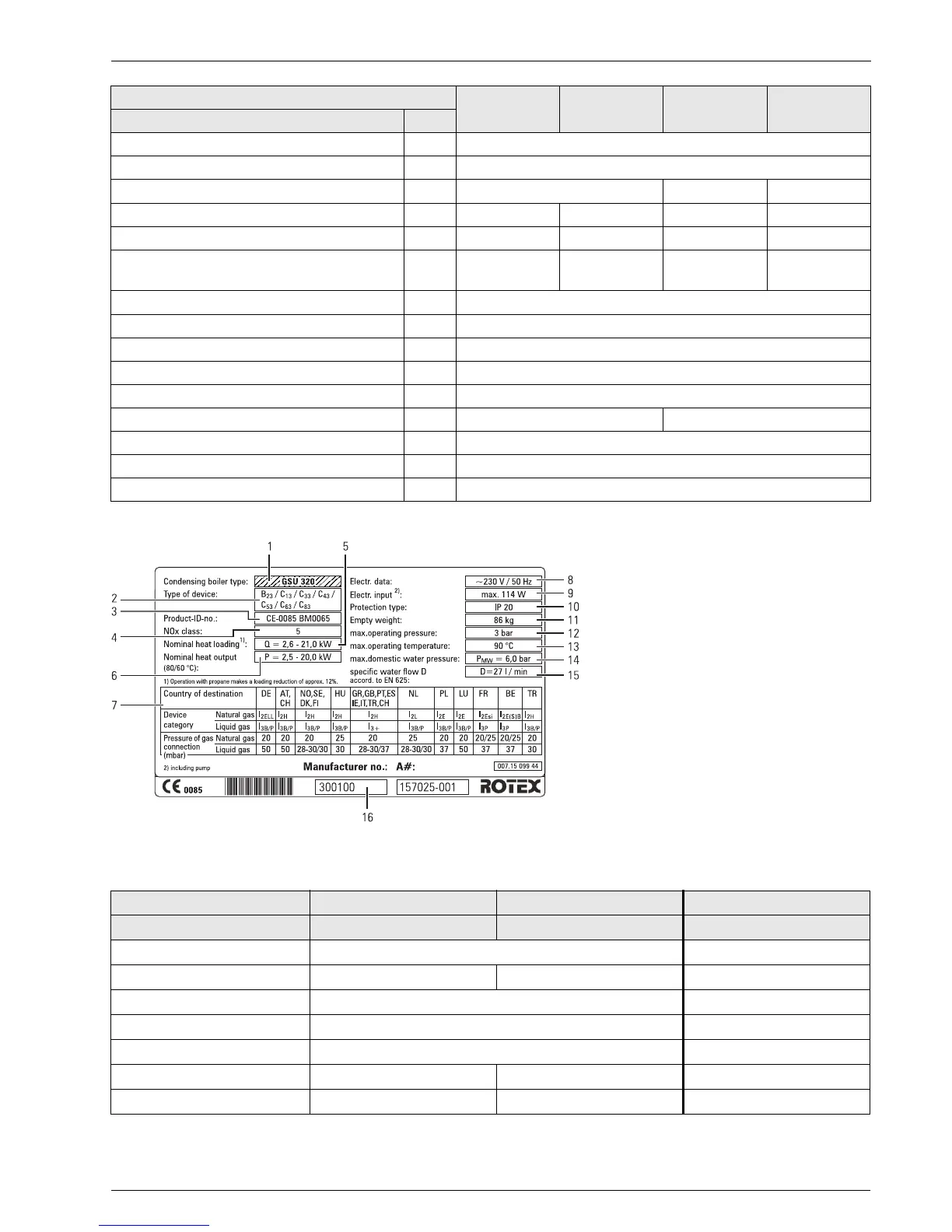 Figure 7-4 Information on type plate on bottom right hand side of storage tank (for information on items see Tab. 7-2 to Tab. 7-4)