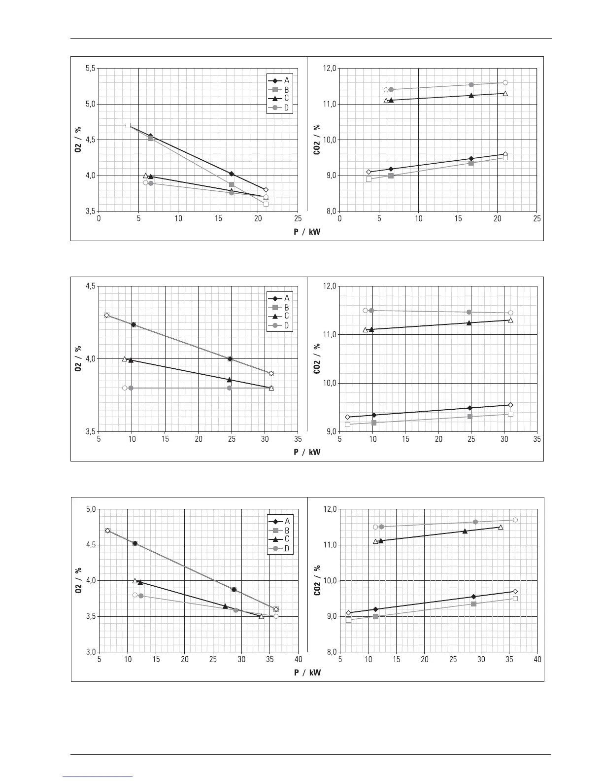 Figure 7-9 Flue gas setpoint values for burner adjustment with reference to burner output P for GSU 530S, O
