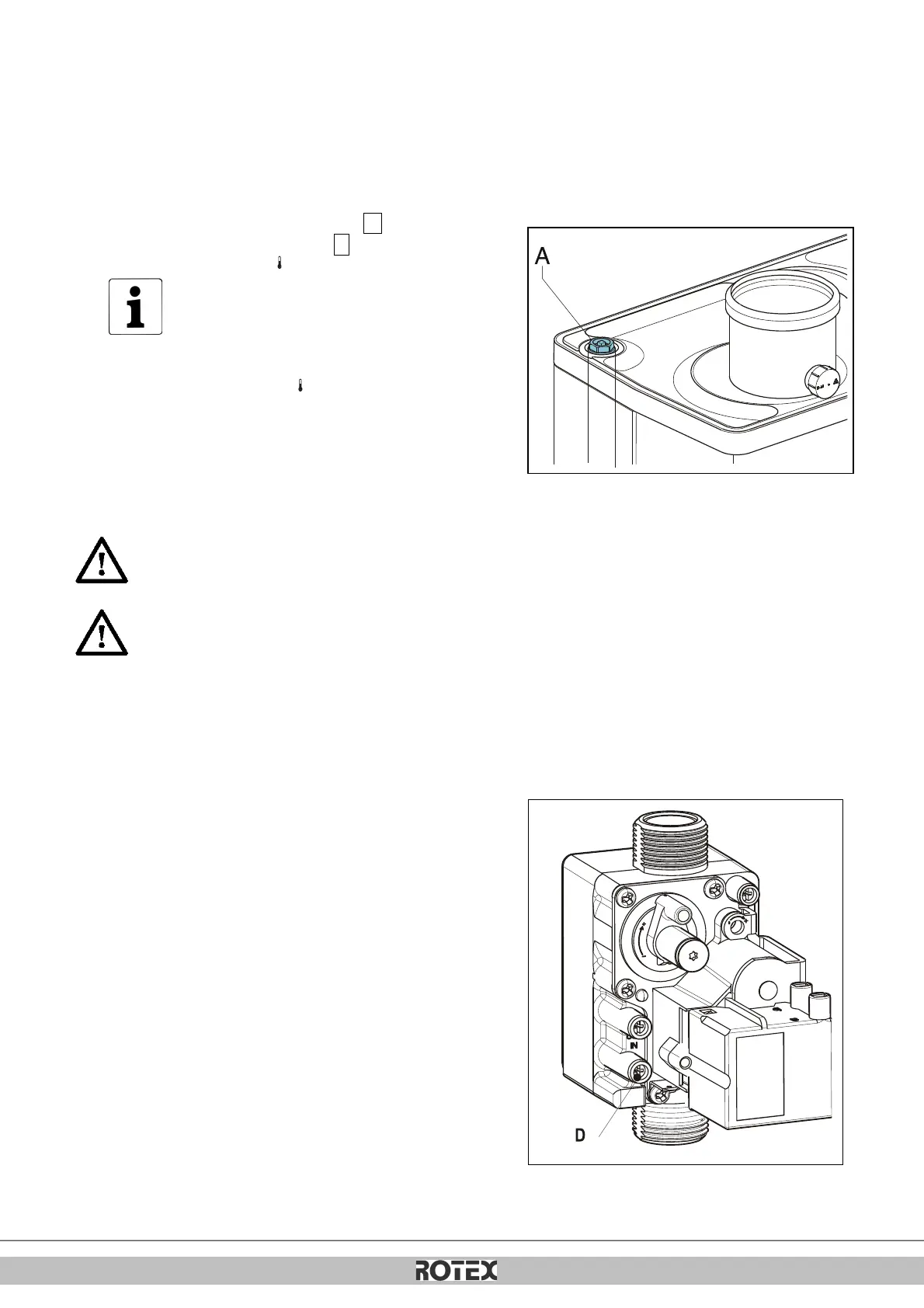 1. Odvzdušněte plynové potrubí pomocí měřicí vsuvky počátečního tlaku (D) na