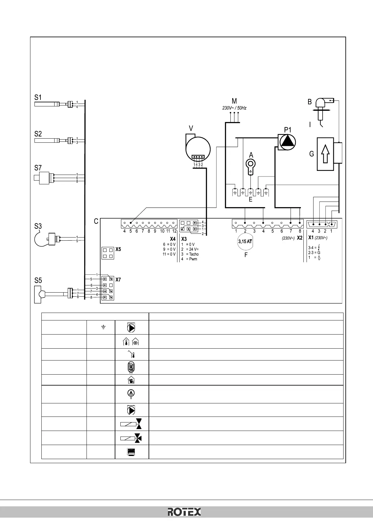 Čerpadlo ÚT (8 = L (hnědý), 7 = N (modrý), E = uzemnění)