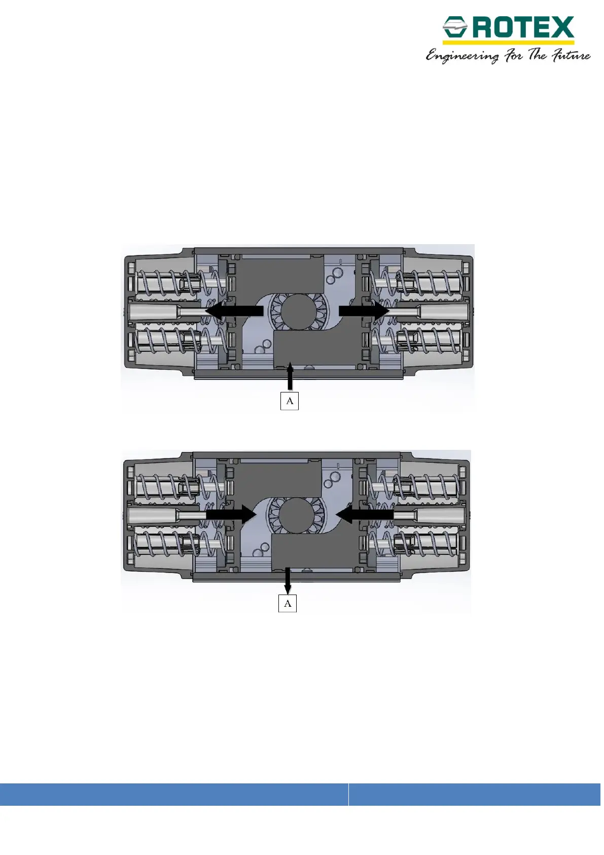 When the air is exhausted through Port A, the springs return the pistons to the home