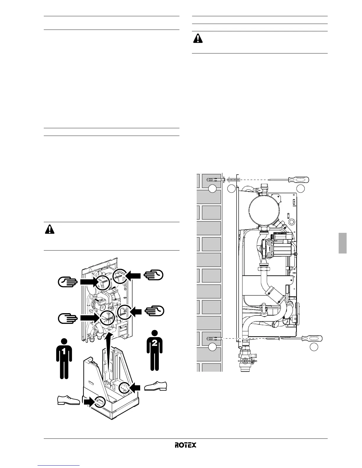durch zwei Personen erfolgen, die die Einheit an den dafür