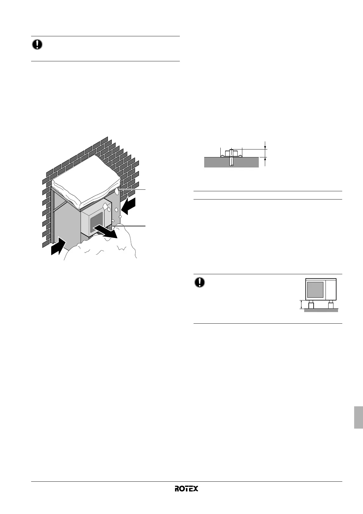 Ünitenin kara gömülmemesi için yerden yeterli bir