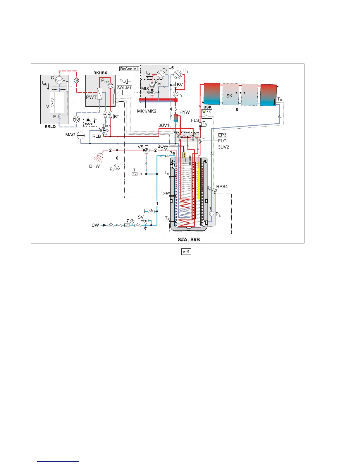 Fig. 7-1 Standard connection layout with heat pump and drain-back solar