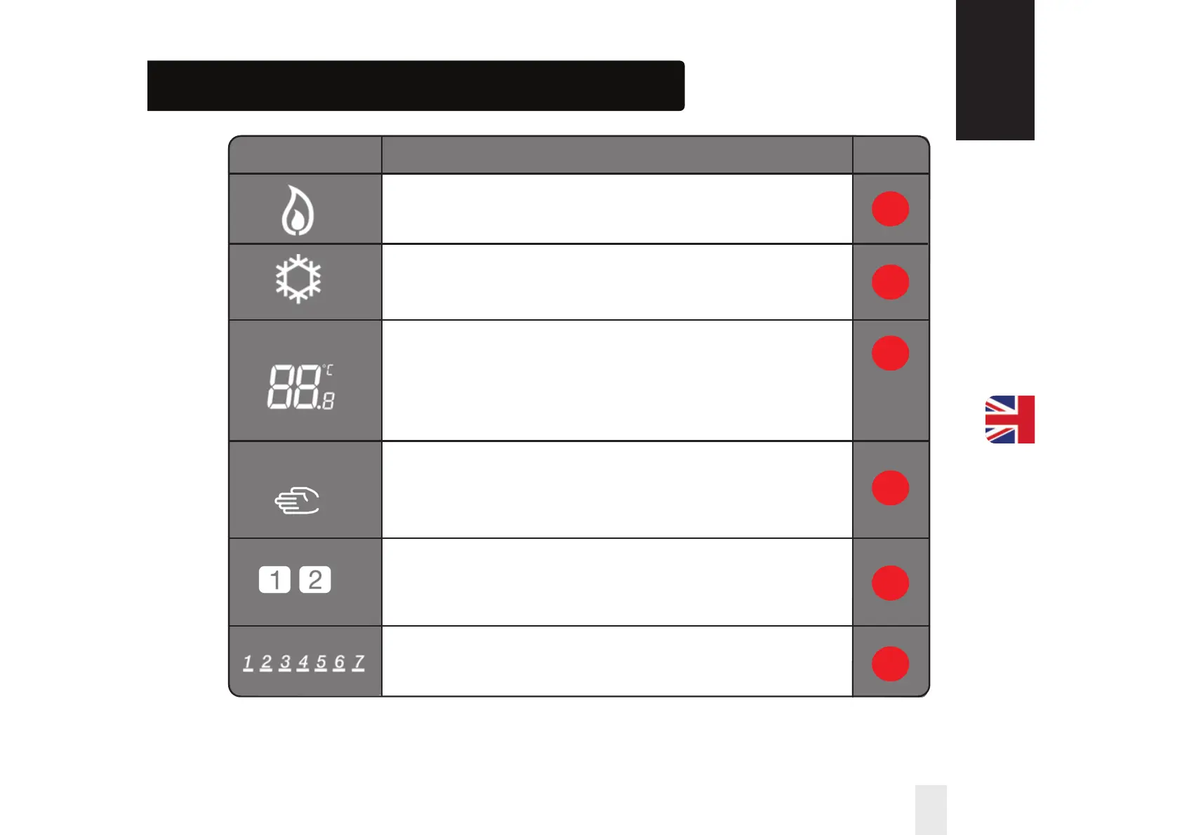 Heat indicator: Indicates heat is required.