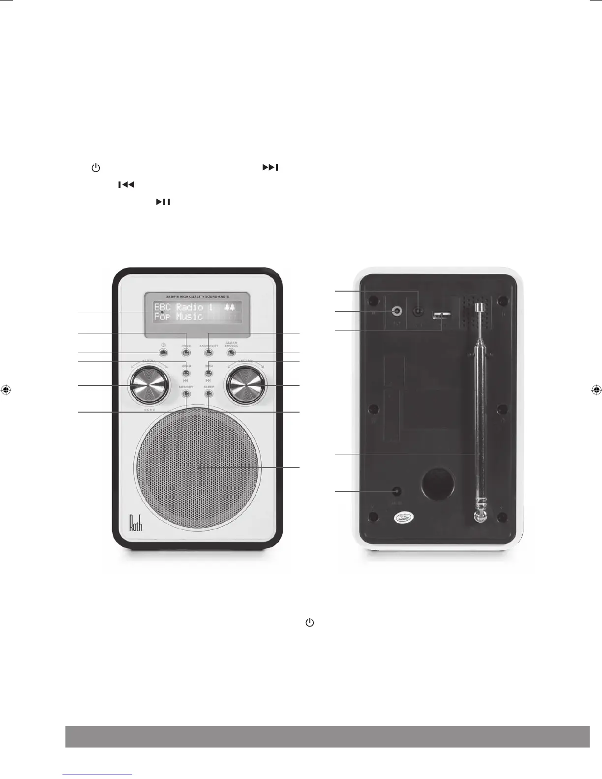 When the radio is connected to the AC power for the first time, it will be in standby mode. The display backlight will be on for a few seconds,