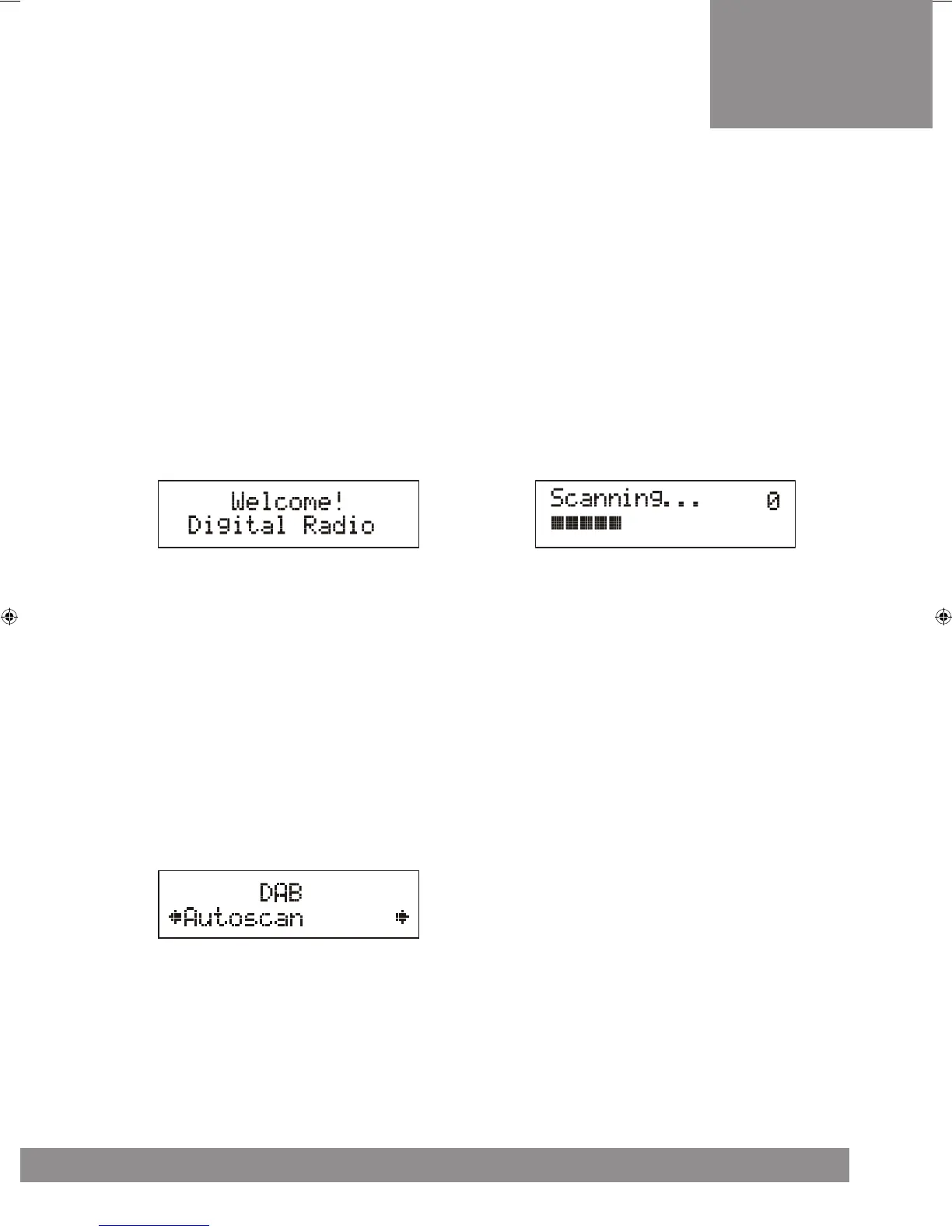 If the radio is powered up and switched on for the first time, it will automatically enter into the DAB mode and perform auto scan function.