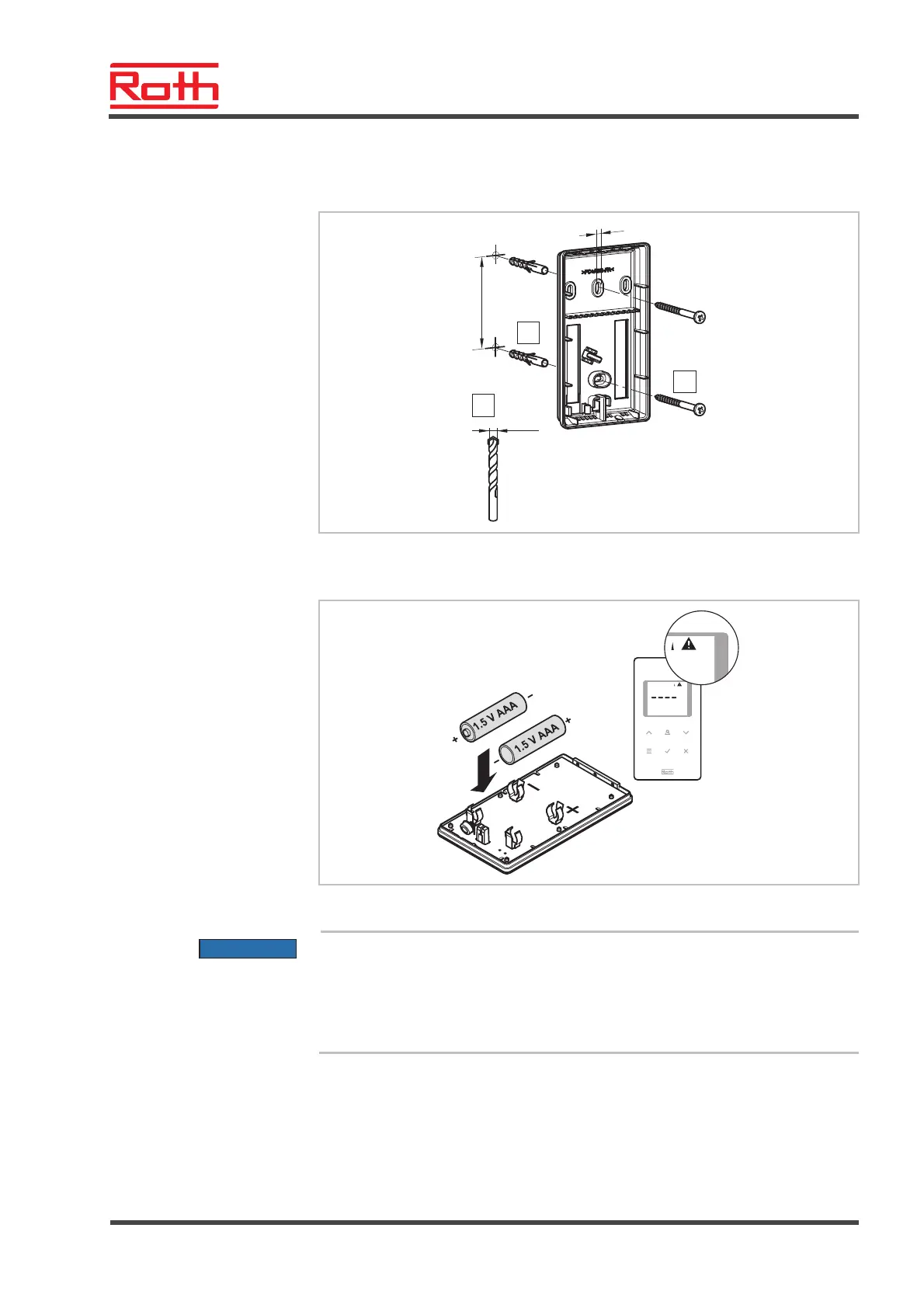 ► Install the bottom part of the wireless room thermostat with the 2 included