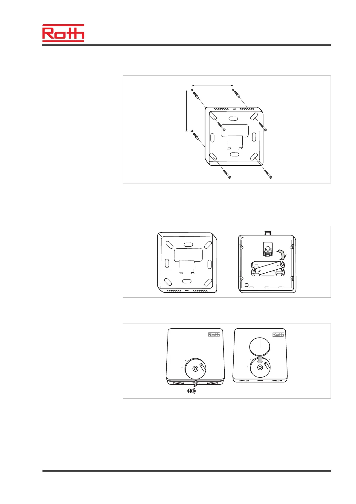 ► Install the bottom part of the wireless room thermostat.