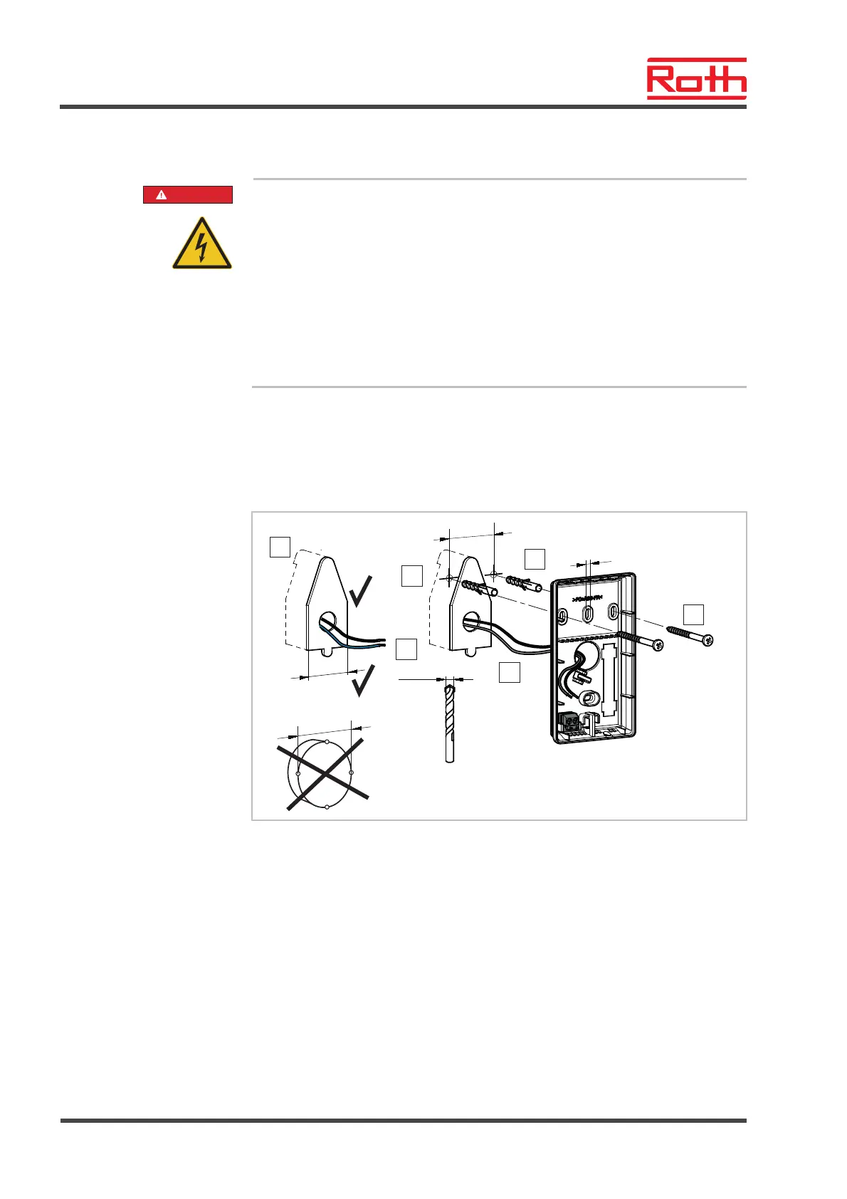 ► Install the bottom part of the wireless room thermostat with the 2 included