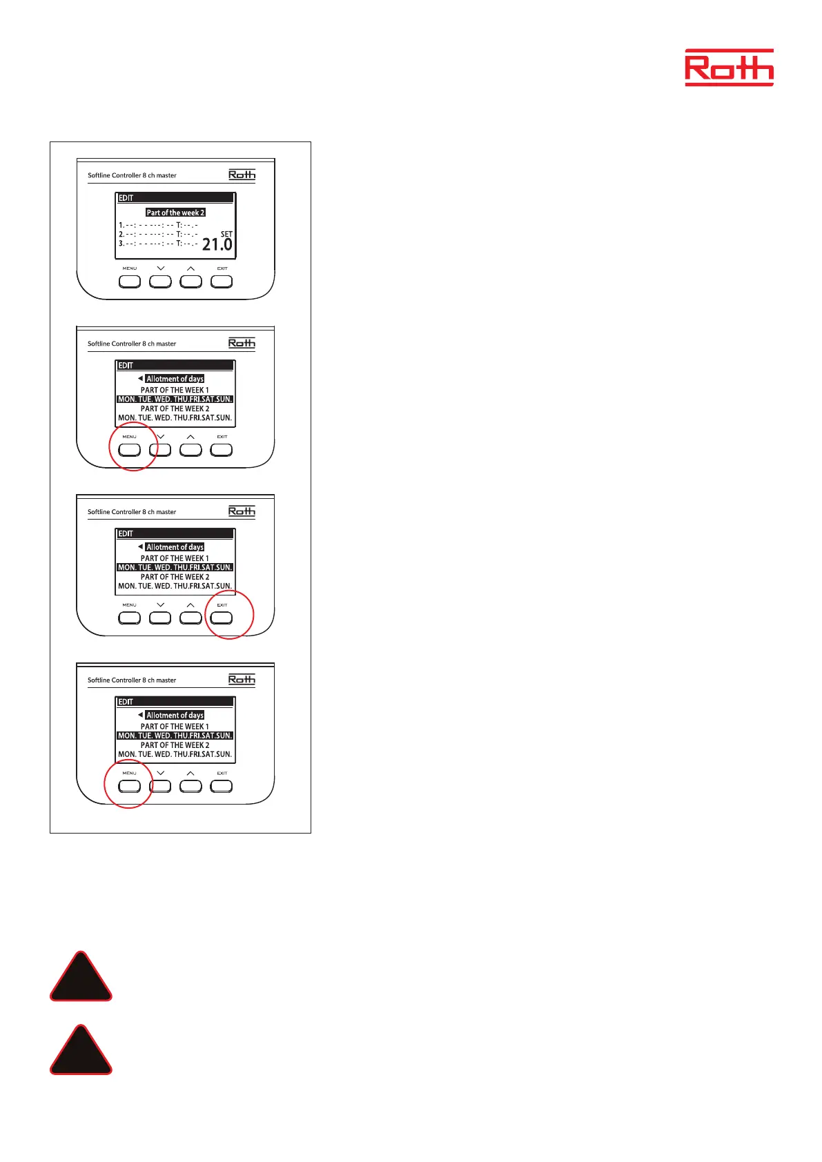 Press MENU bottom to start dening which days to be assigned to schedule “Part of the