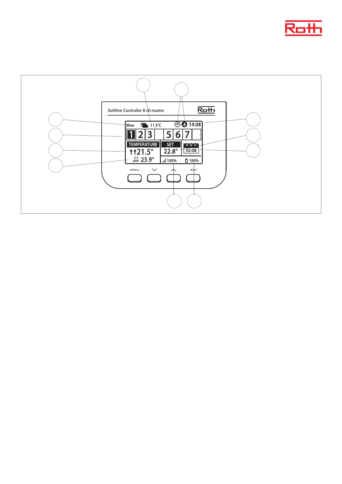 9. Shows the signal strenght of the connection between the controller and the thermostat. Must be at least 10%!