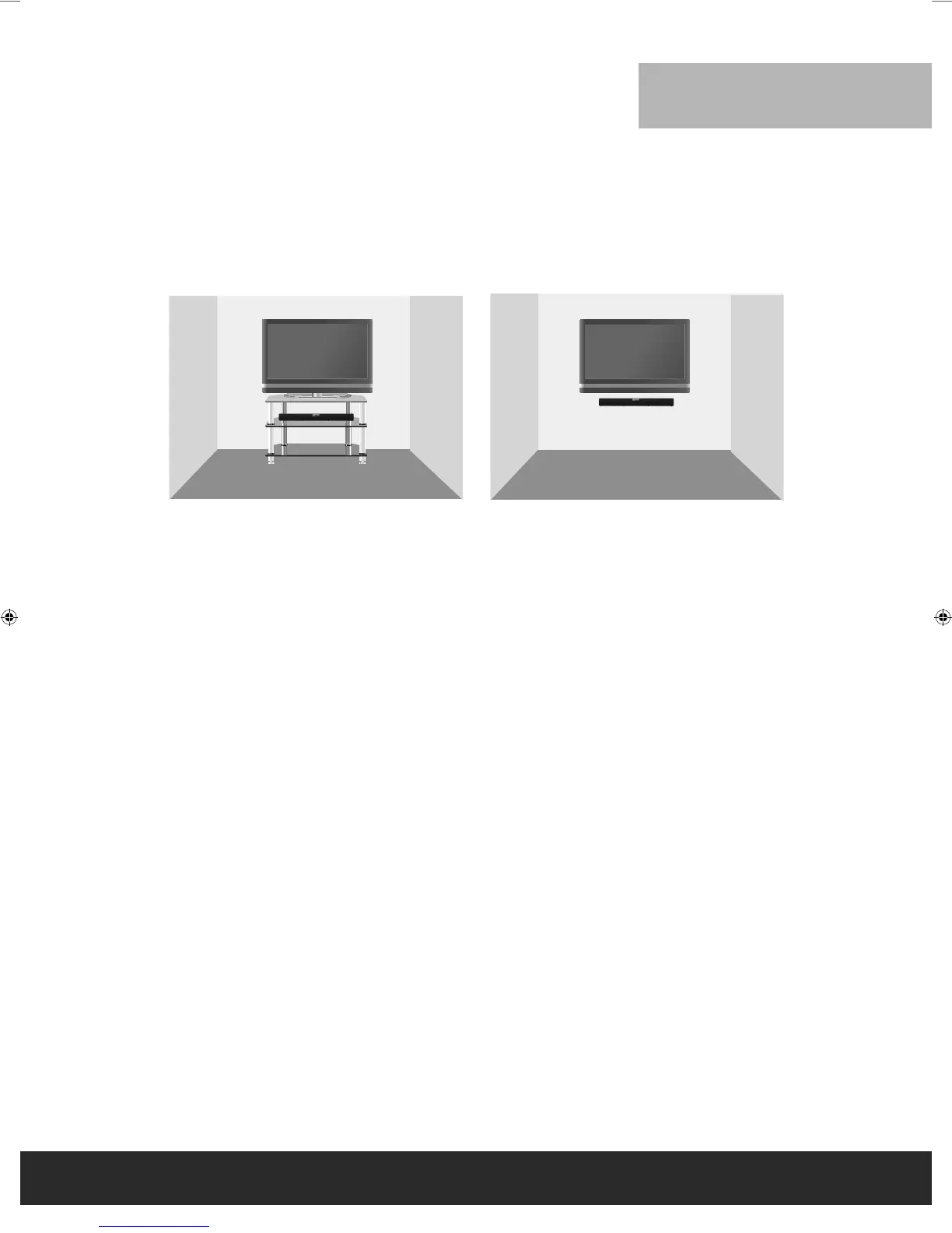 Select an area where sunlight will not fall directly on the soundbar. Also, be sure that the location selected allows a free flow of air to and