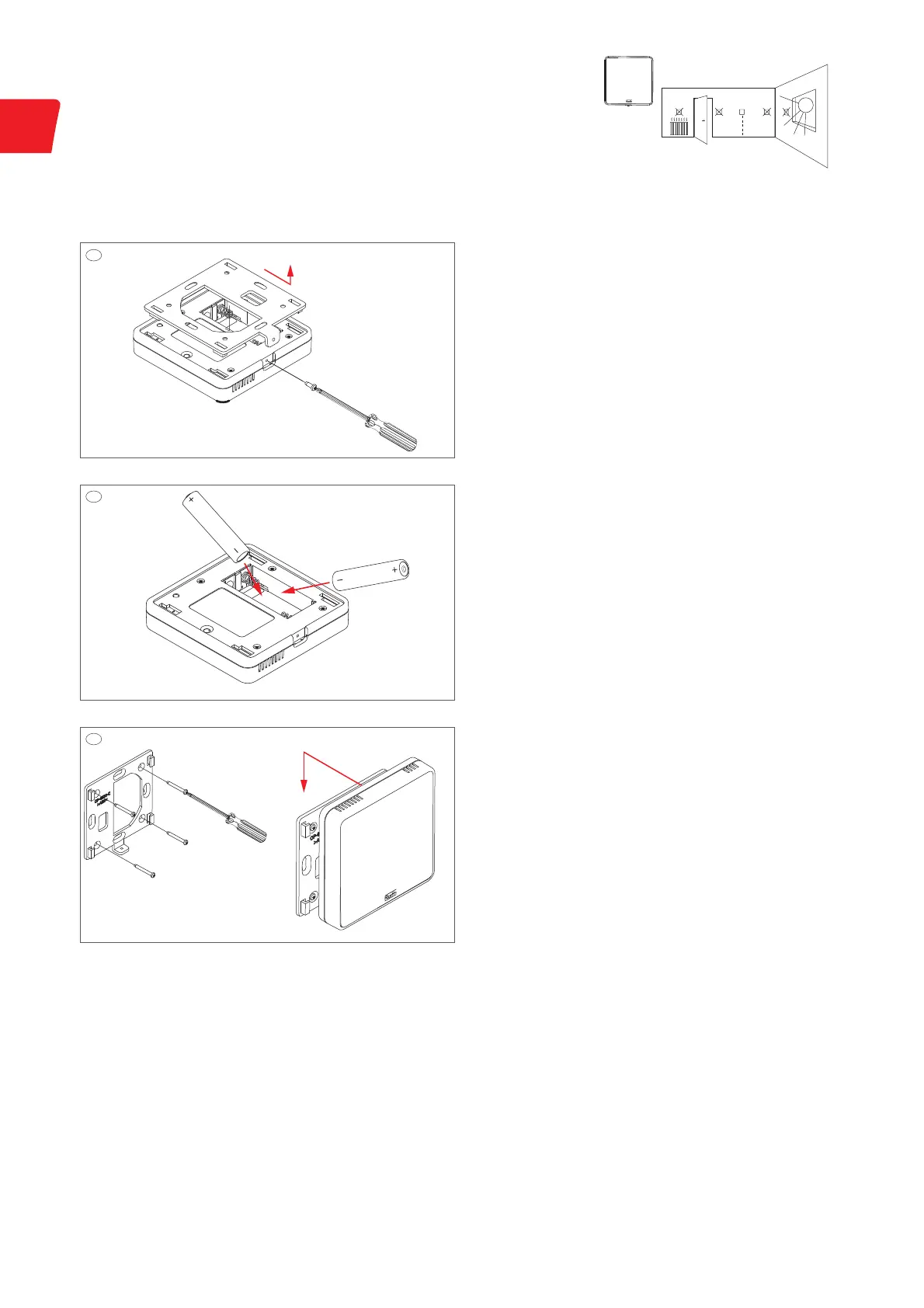 (EN) Mount backplate on the wall (screws incl.) sensor slides onto