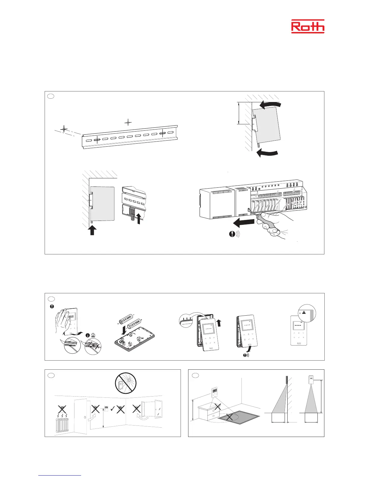 Roth Touchline - 3. Install the Touchline control device and connect the actuators (24 V).; 4. Insert the batteries in the thermostats and mount the thermostats on the wall.