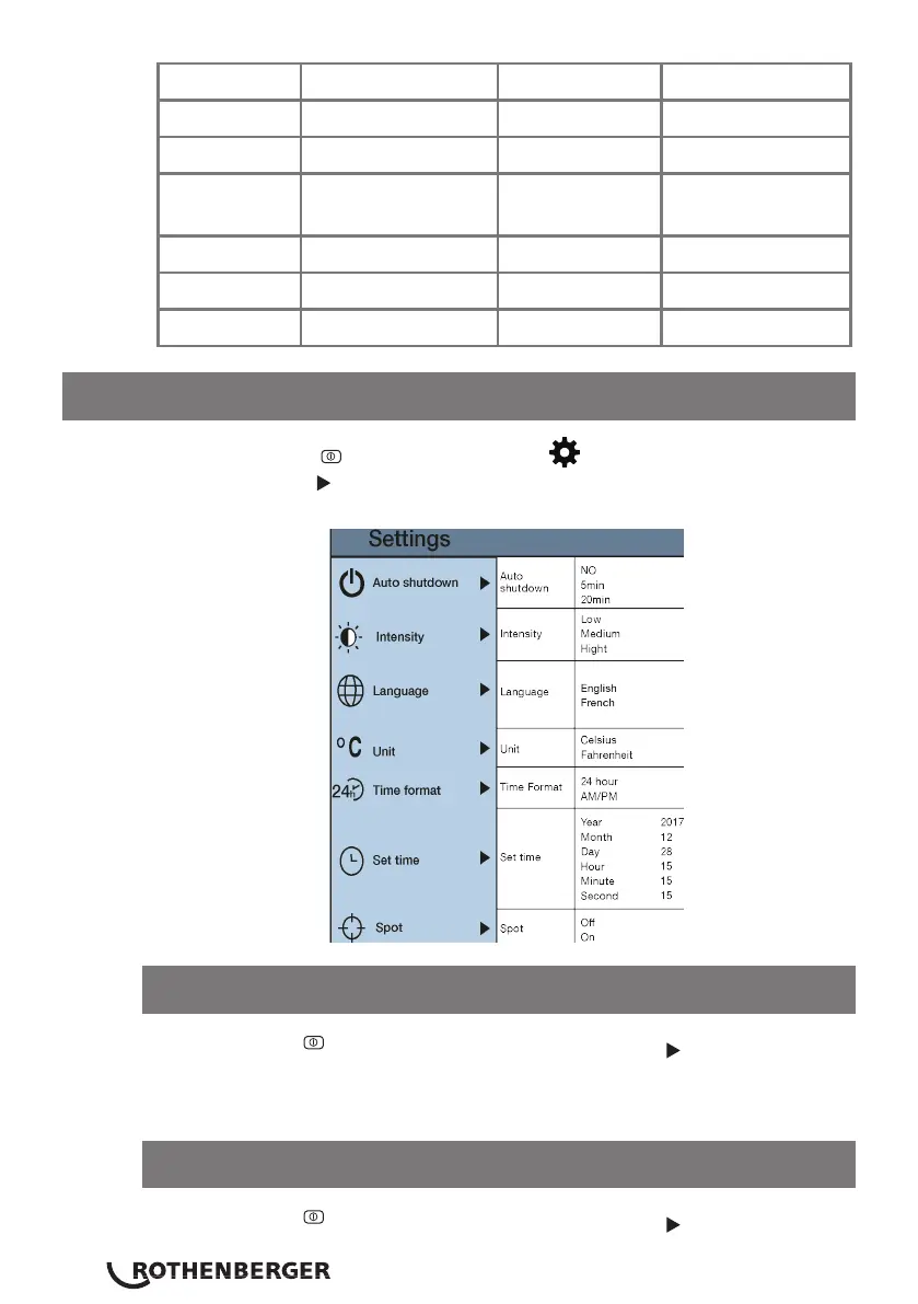 menu. Press the “ ” key again to enter the settings sub-menu.