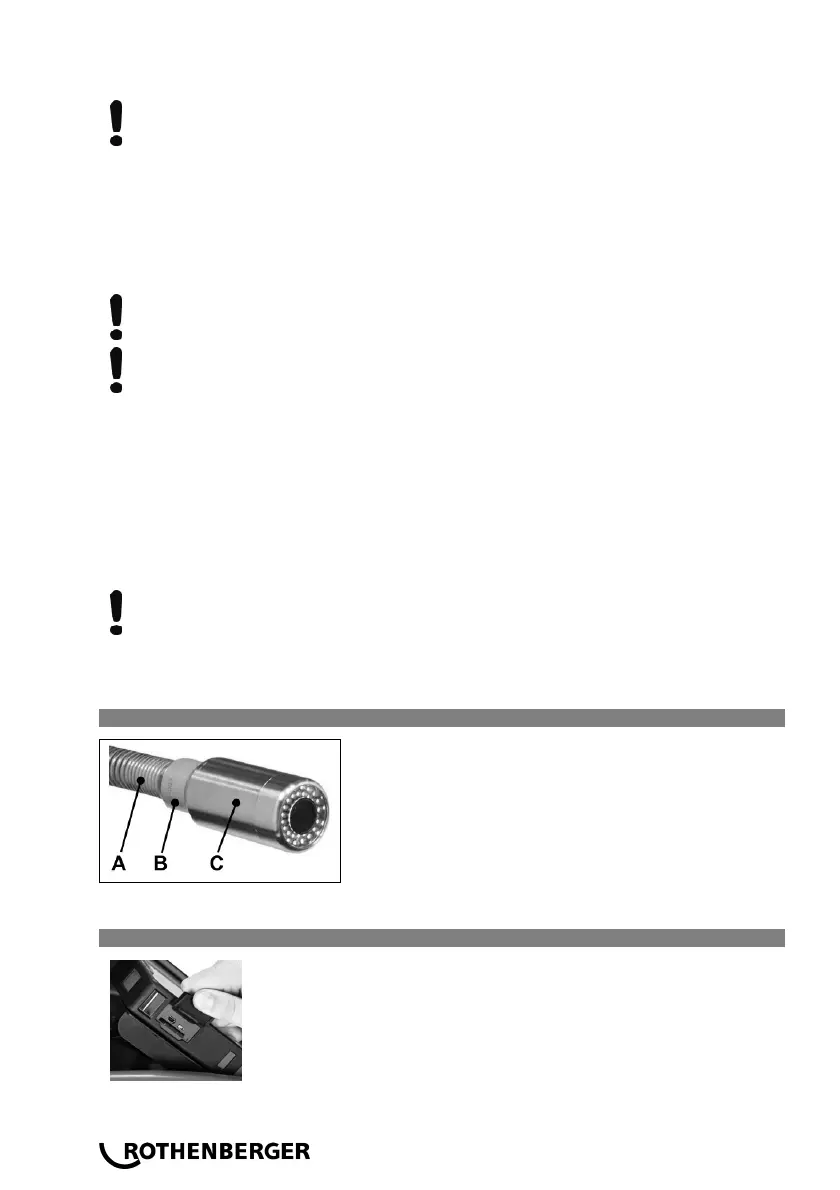 Rendszeresen ellenőrizze, hogy a kamerafej (1) jól zár-e. Ehhez csavarja a vizsgáló