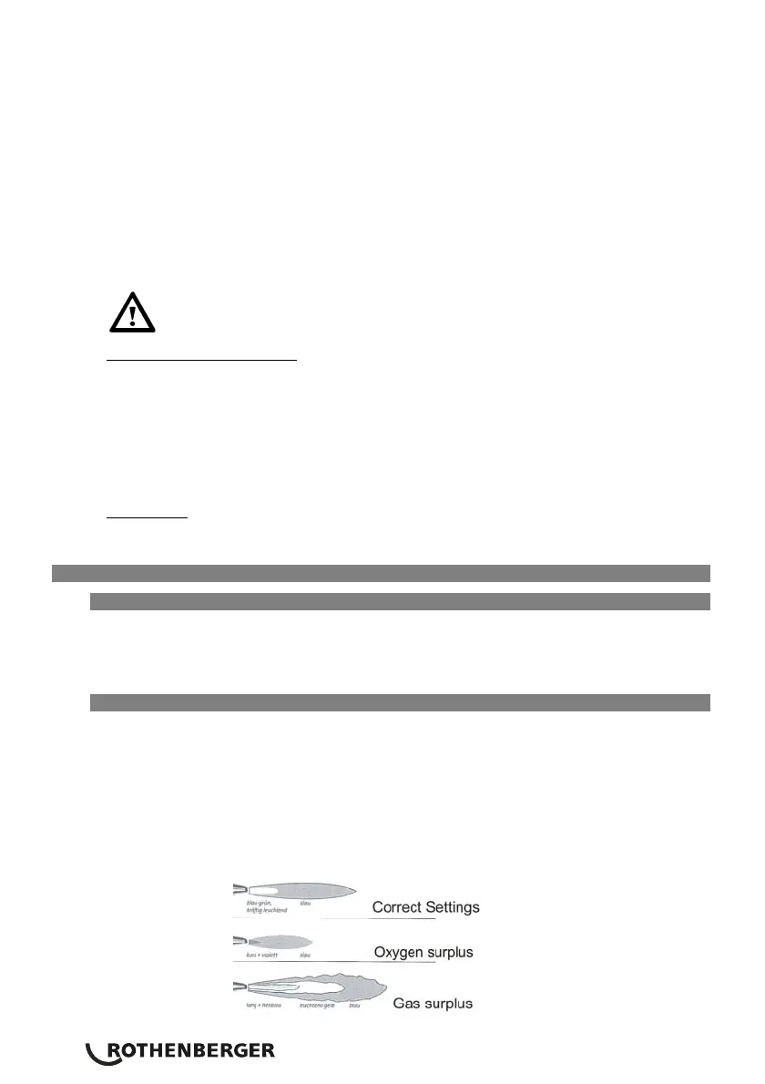 Za pomocą odpowiedniego zapalnika do gazu zapalić mieszaninę tlenu i gazu w dyszy palnika.