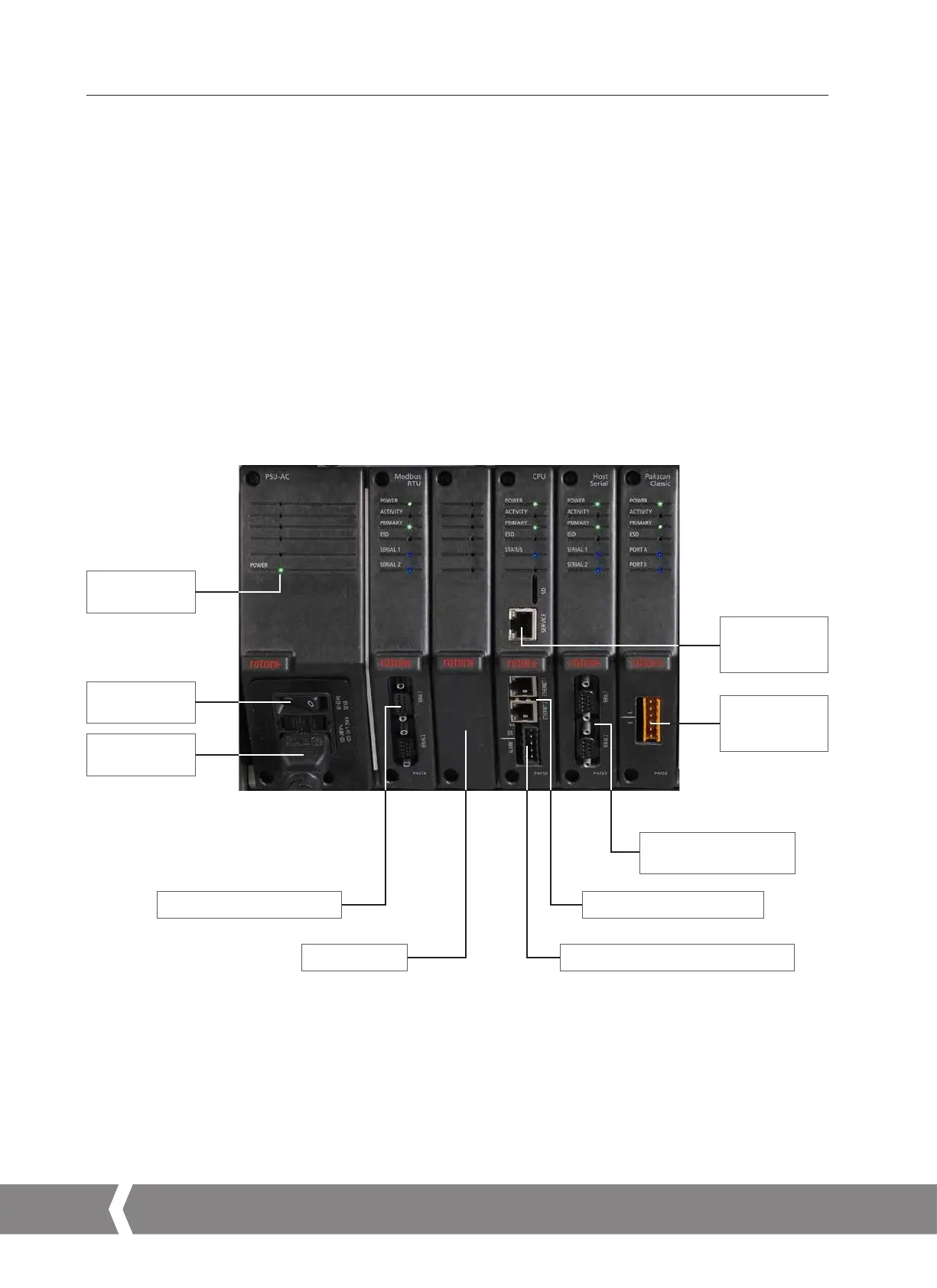 The example below has three optional AIMs fitted; Pakscan Classic field network, Modbus RTU field network and Host Serial. Refer to the