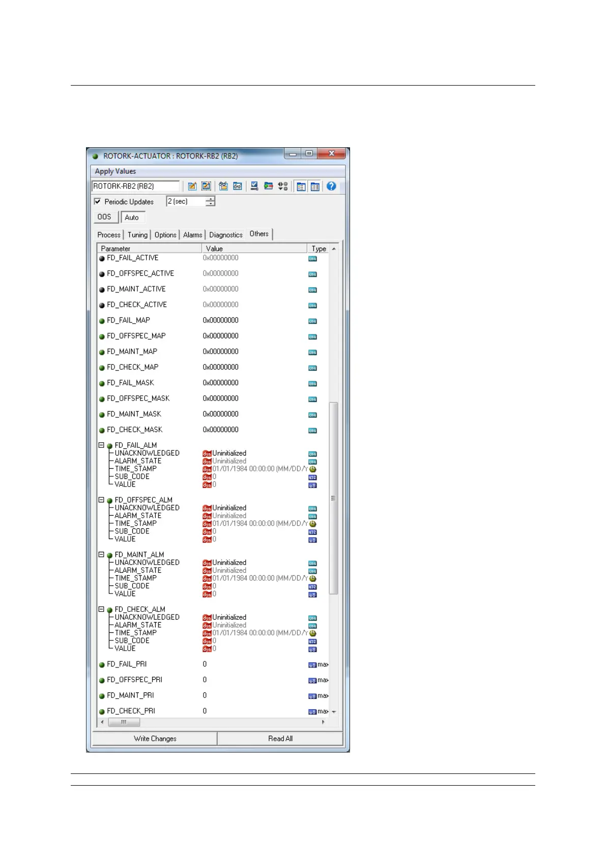 The ITK6 fieldbus device Resource block default Diagnostics settings are as follows: