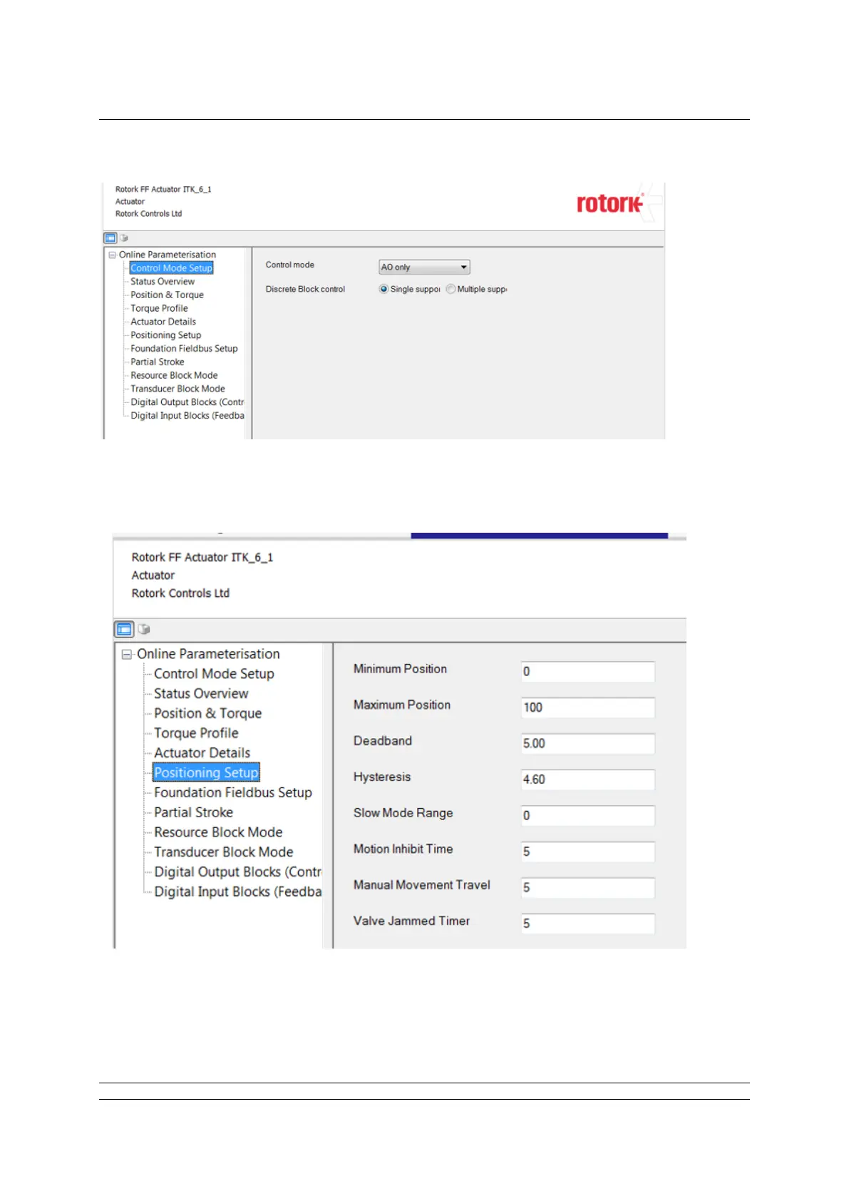 Fig G.3: Setting the actuator positioning parameters