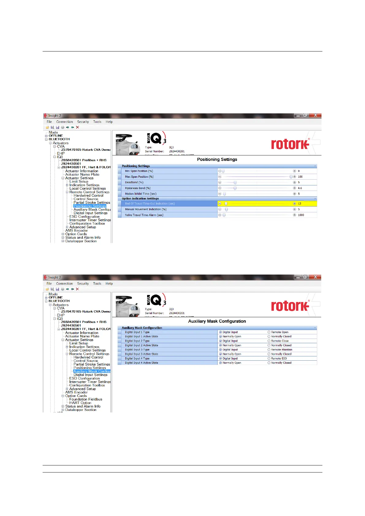 Fig 8.2: Actuator positioning settings.