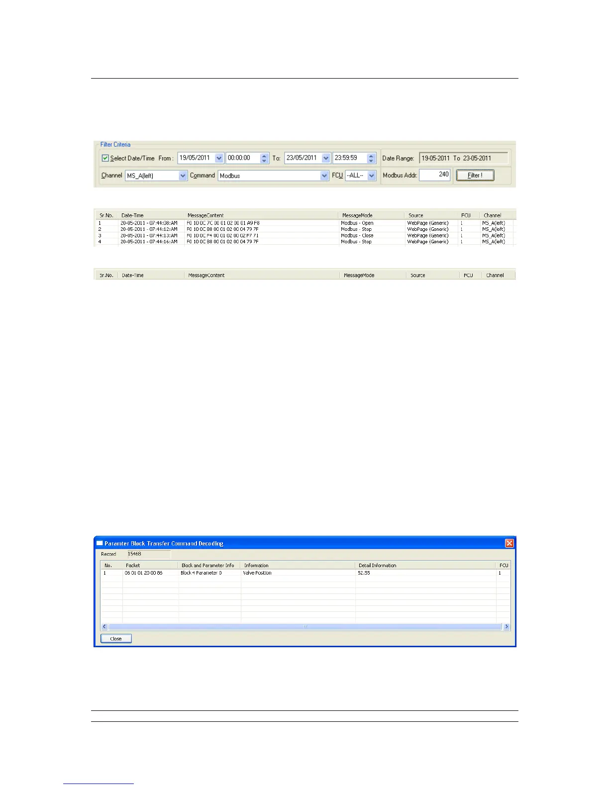 For example: to see all Modbus messages for all the FCUs on the A side of a hot standby master with