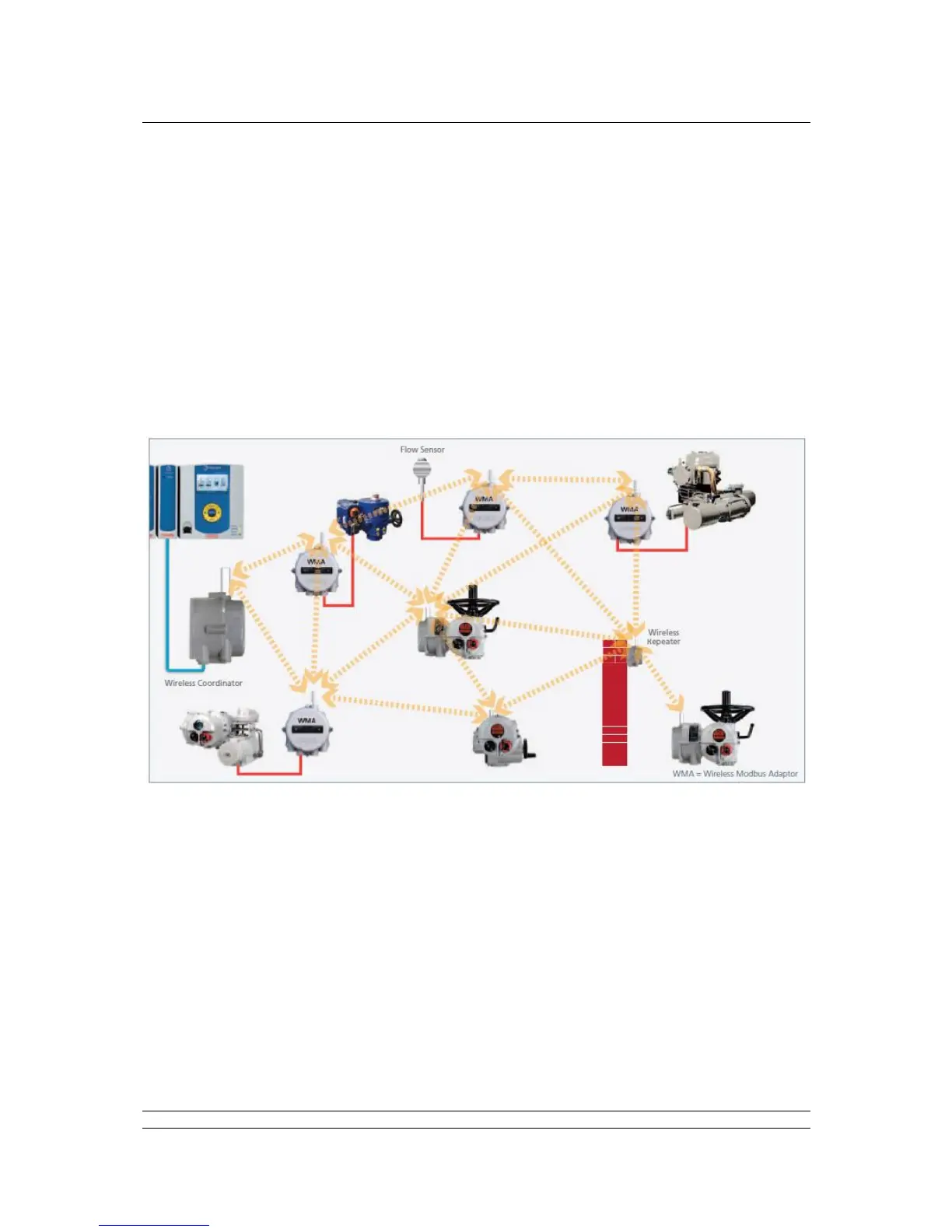 using a Wireless to Modbus adaptor (P3W WMA). The P3W WMA can be attached to any device that