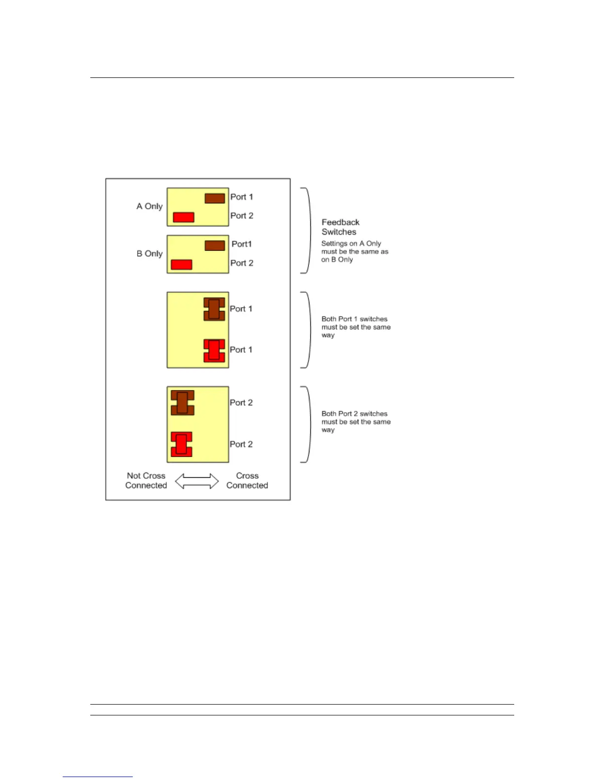 The feedback switch positions must reflect the Cross-Connection settings for Port 1 and Port 2.