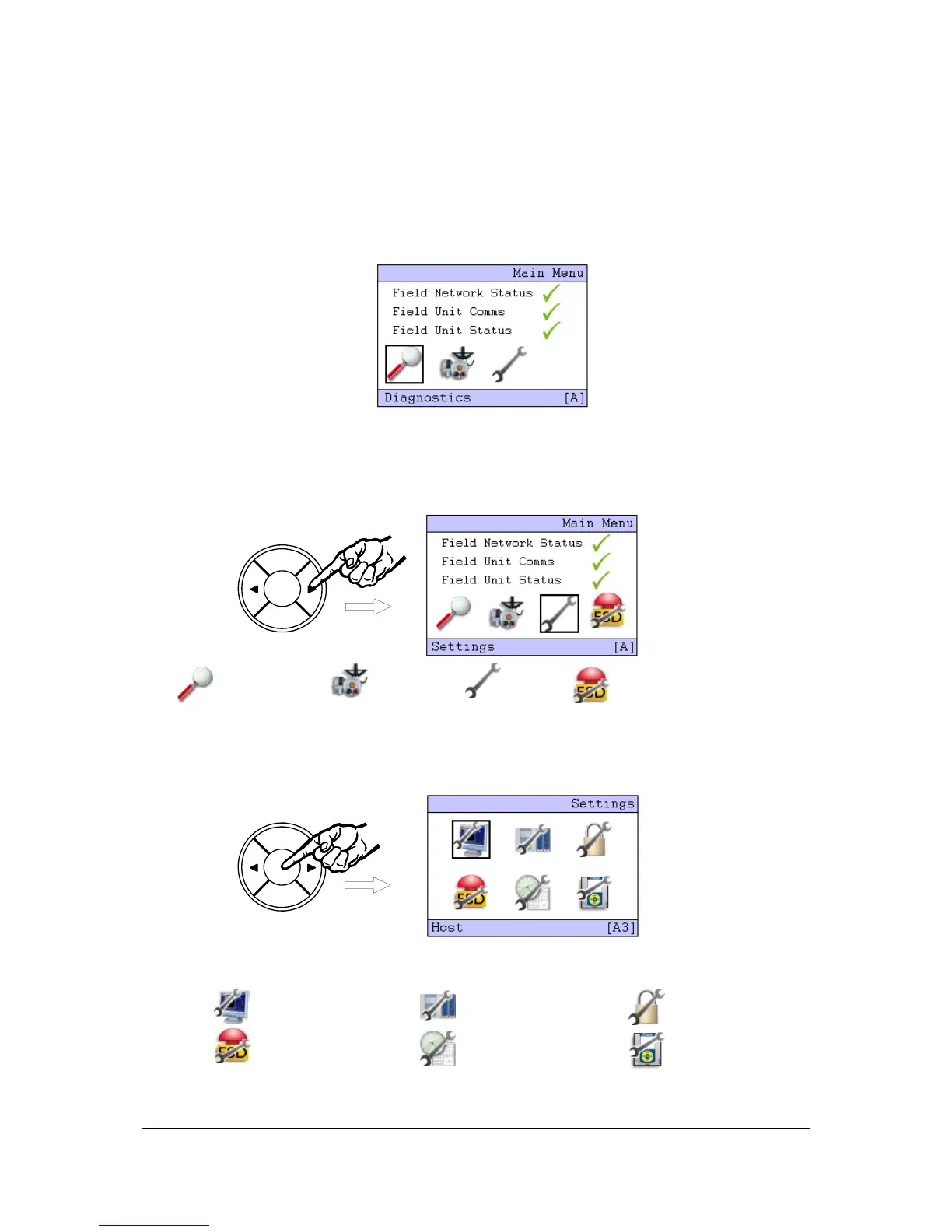 Diagnostics Menus Field Unit Menus Settings Menus ESD control - only visible when