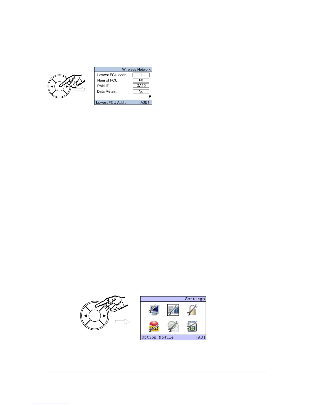 Press ENTER and the screen will return to the settings screen and the Lowest FCU addr. will be
