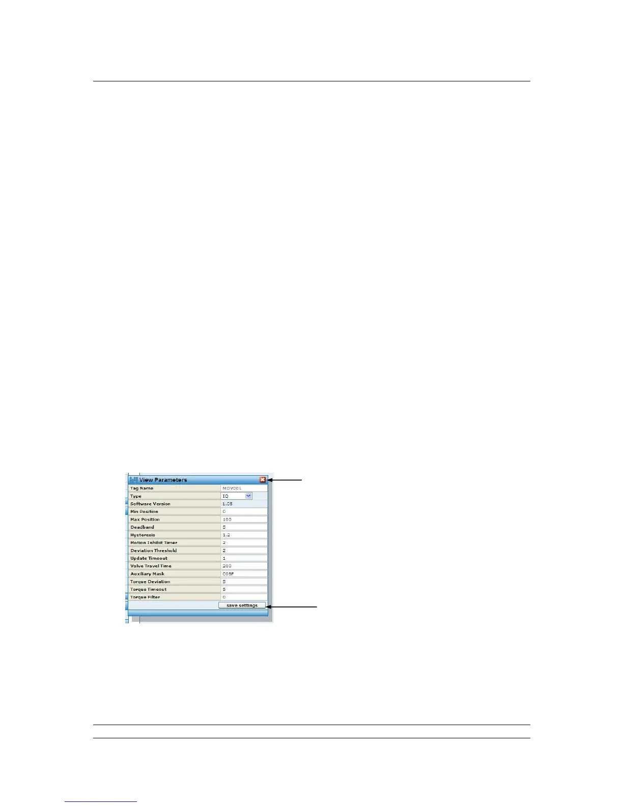 Pop-up screen shows the settings for all the parameters relating to the IQ / IQT actuator field