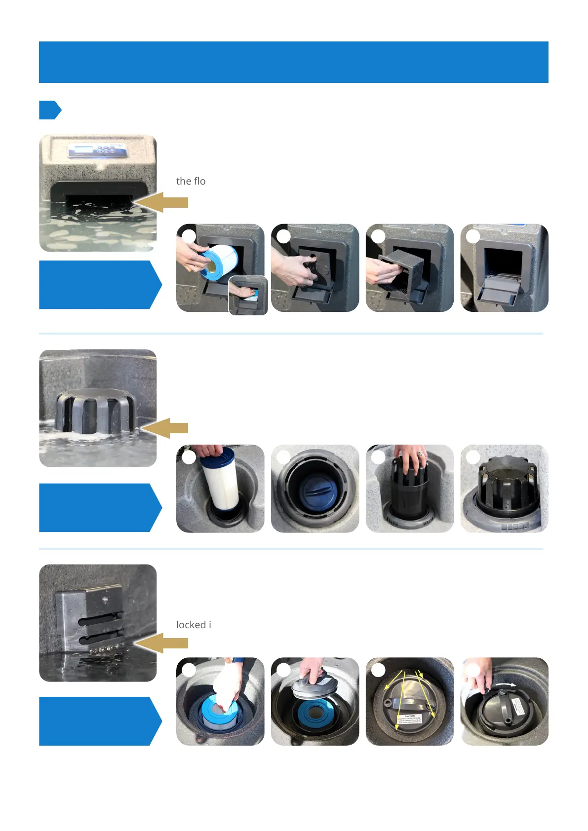 First Insert your lter cartridge. To gauge whether the spa is full, push the