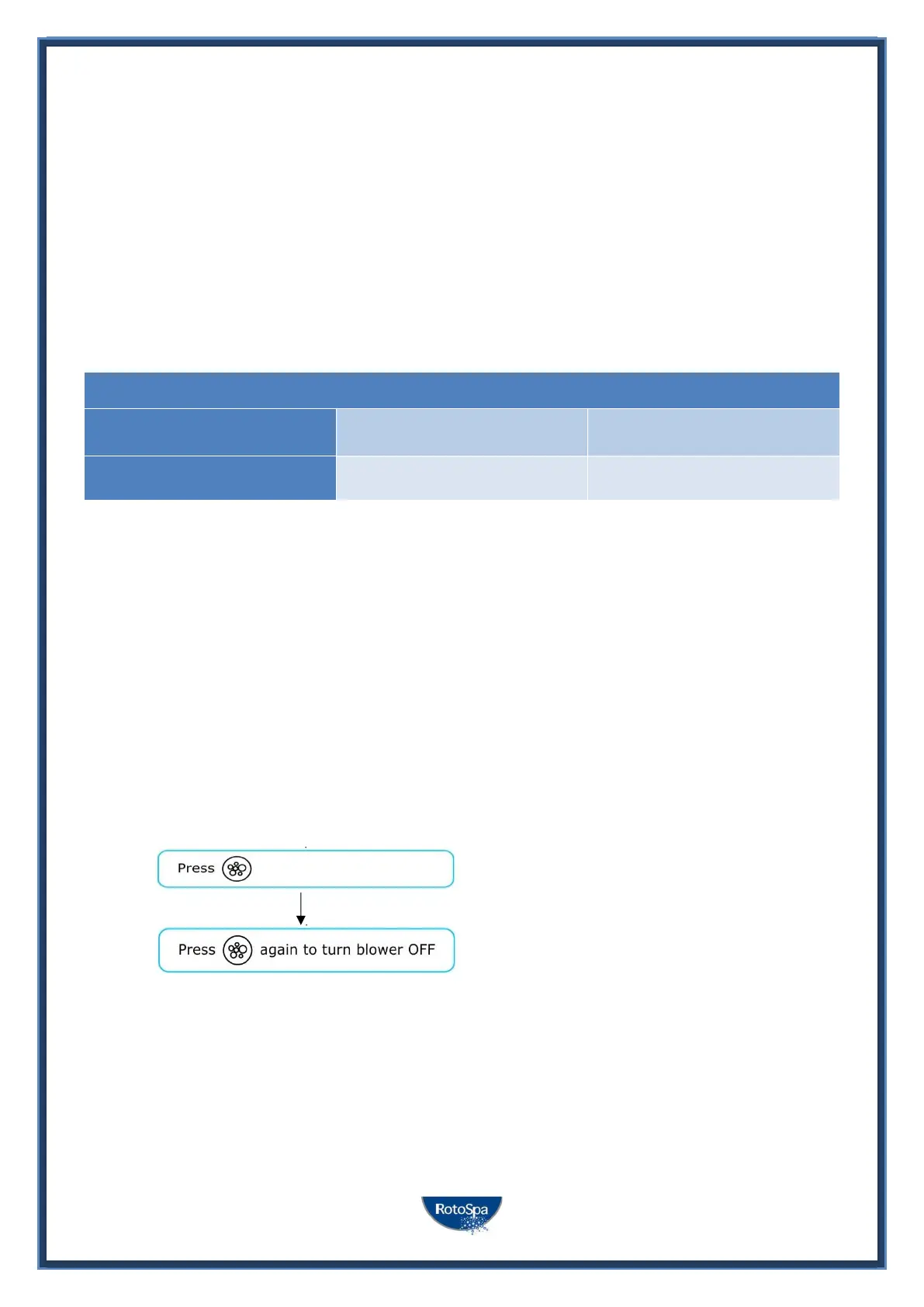 and heating functions. All pump(s) will also operate for a short period during the daily sanitise cycle. In