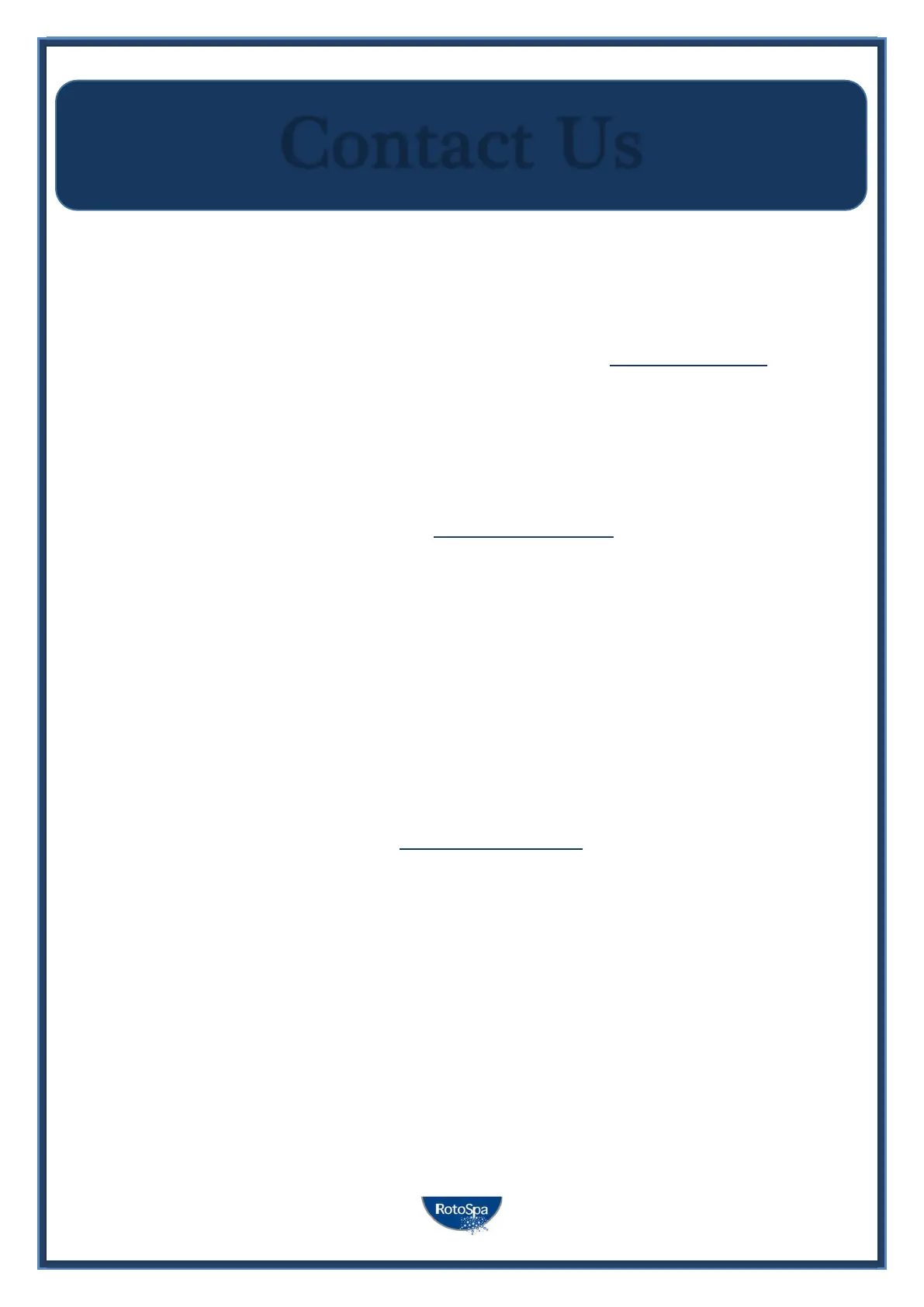 however if you require any further assistance with your Rotospa Hot tub please don’t hesitate to