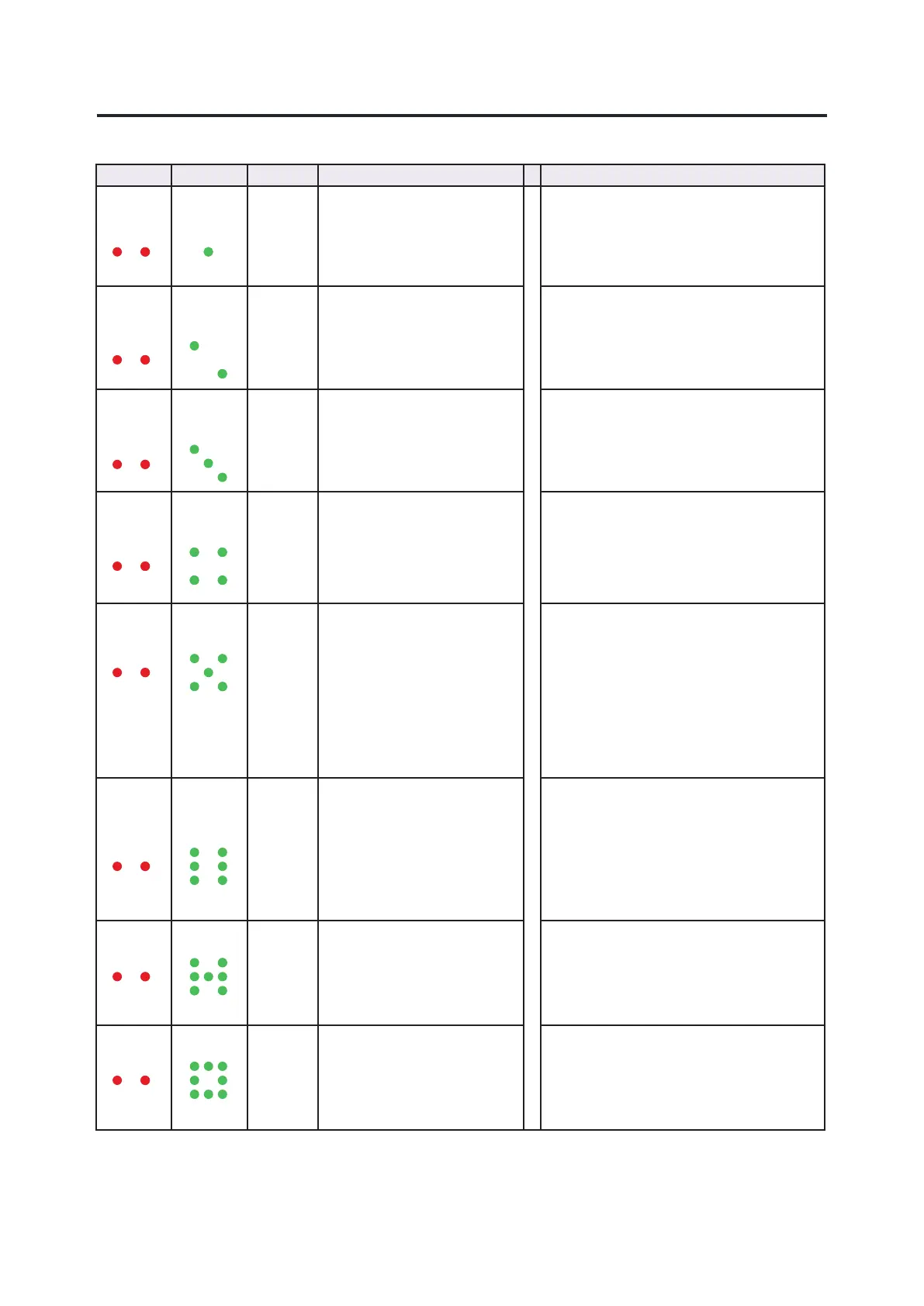 Red LED Green LED Buzzer Possible cause Action