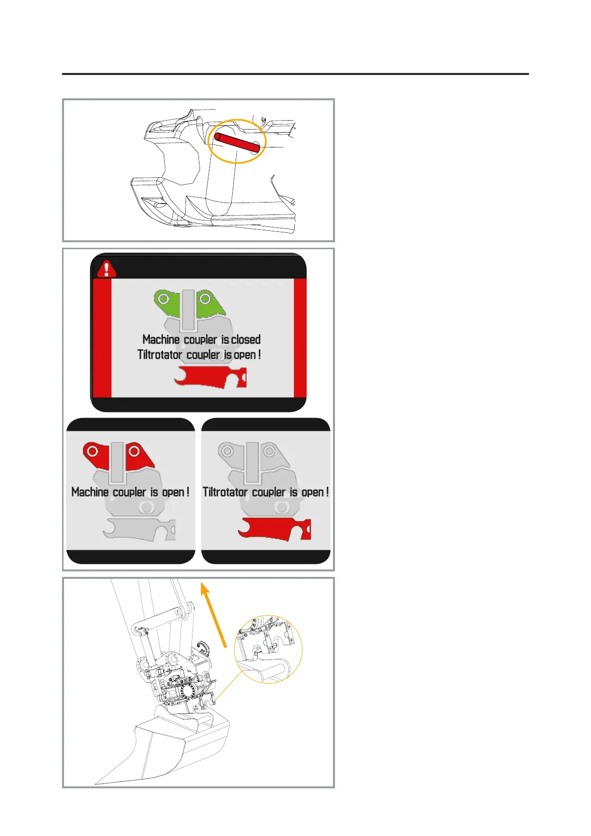 quick coupler shows that the lock is open.