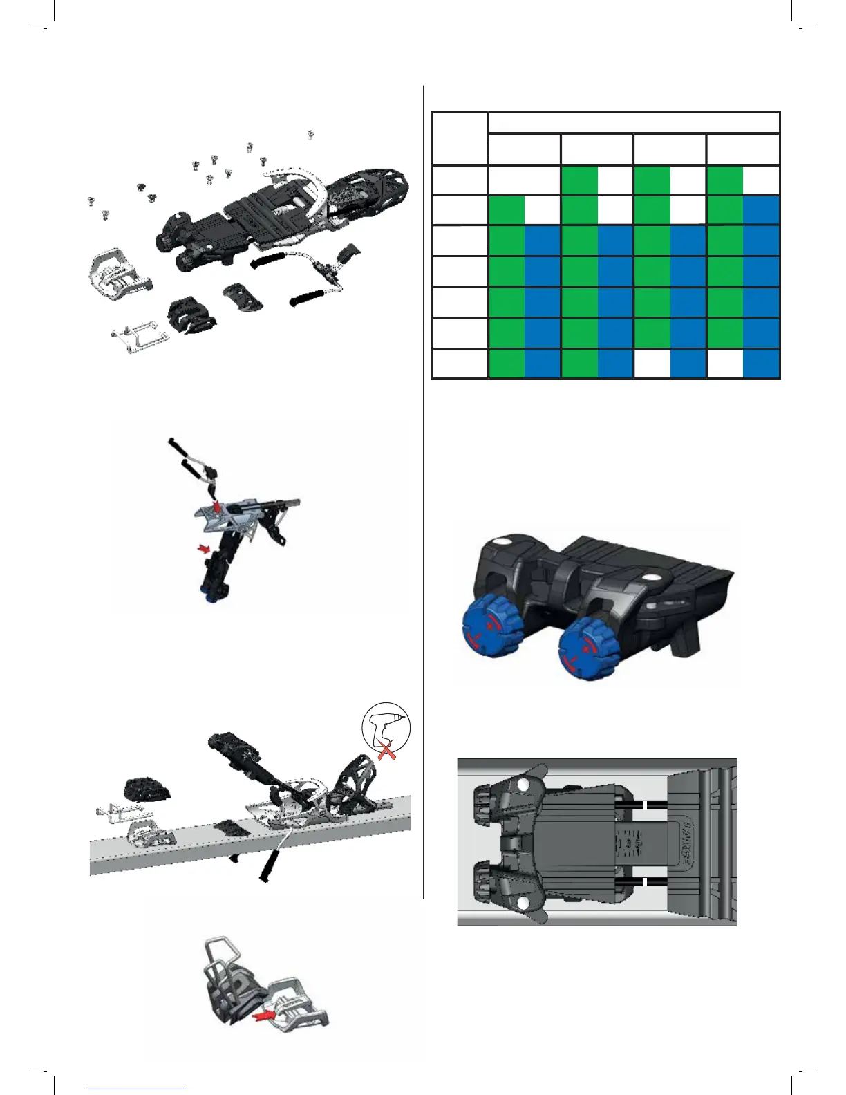 1. Fixation 2. Stop-ski 3. Plaque de soutien 4. Talon avec 2 élévateurs de ta