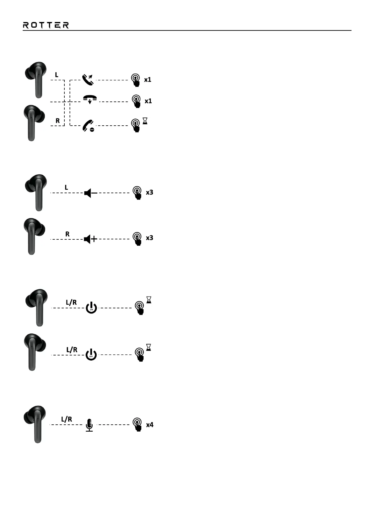 Einschalten: Halten Sie den R/L-Kopfhörer 5 Sekunden