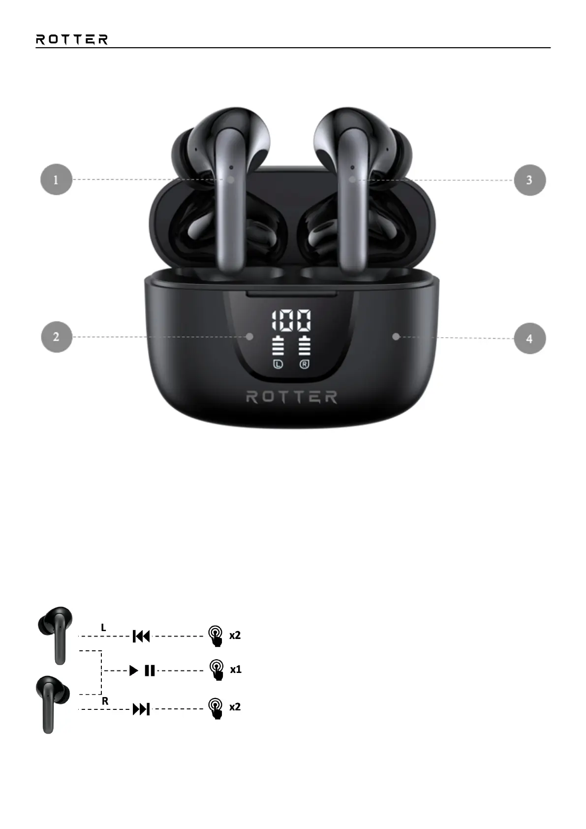 Redare/Pauză: faceți clic o dată pe casca L/R