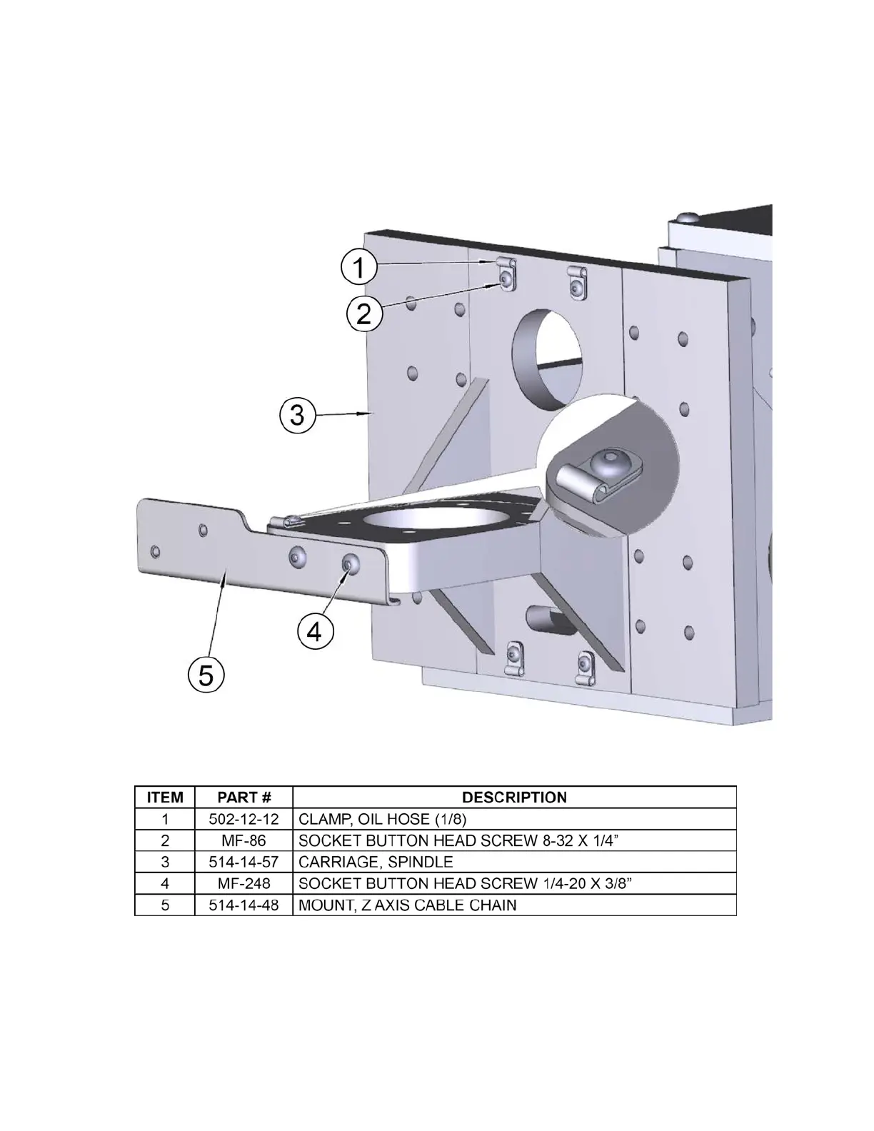 Rottler H85A - Spindle Drive Carriage Assembly; Oil Lines and Wire Track Attachments