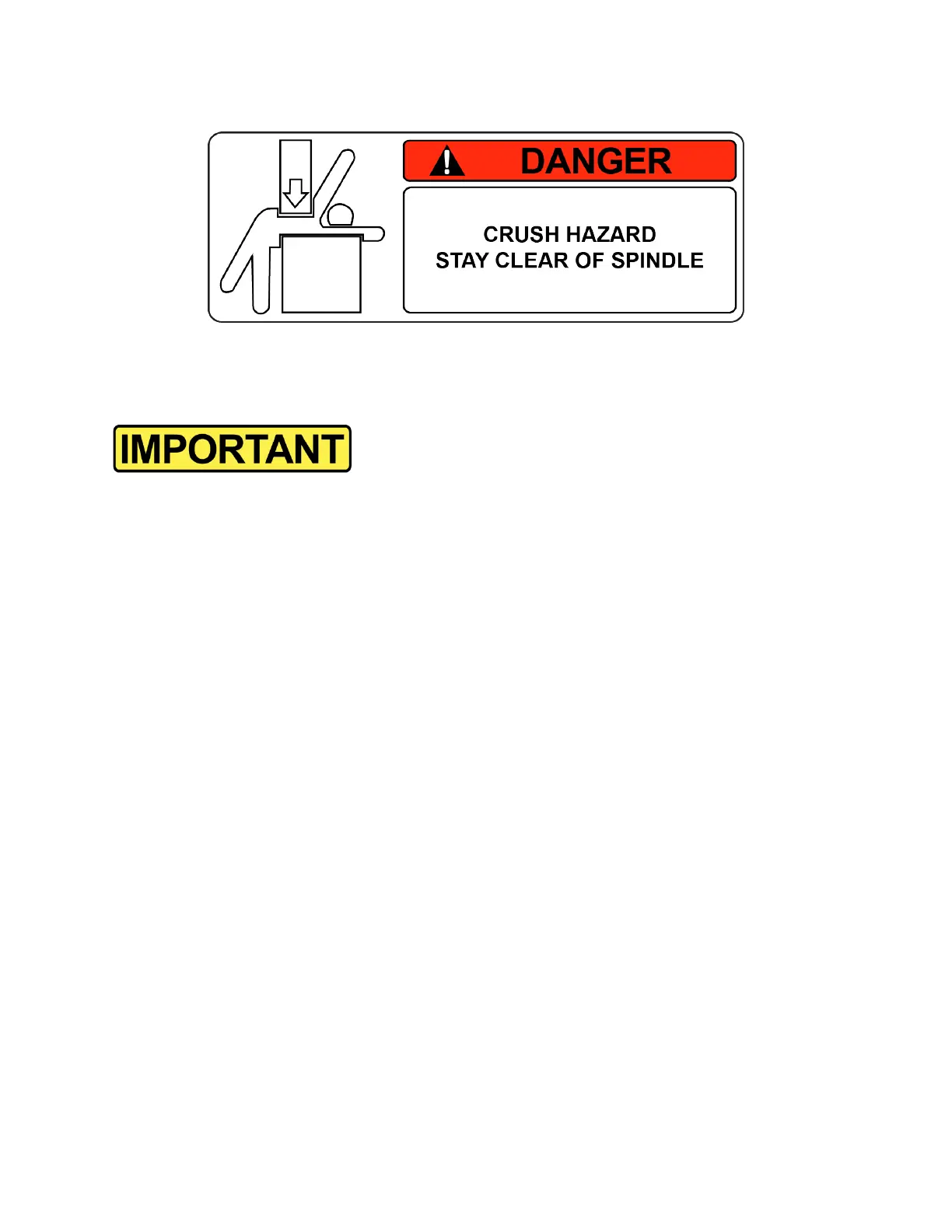 Keep clear of spindle when working in tank area. Spindle can drop if there is a failure in the machine.