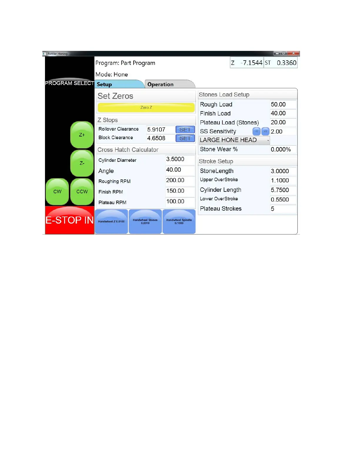 This section is where the clearance height for the hone head is set. A value can be entered by touching
