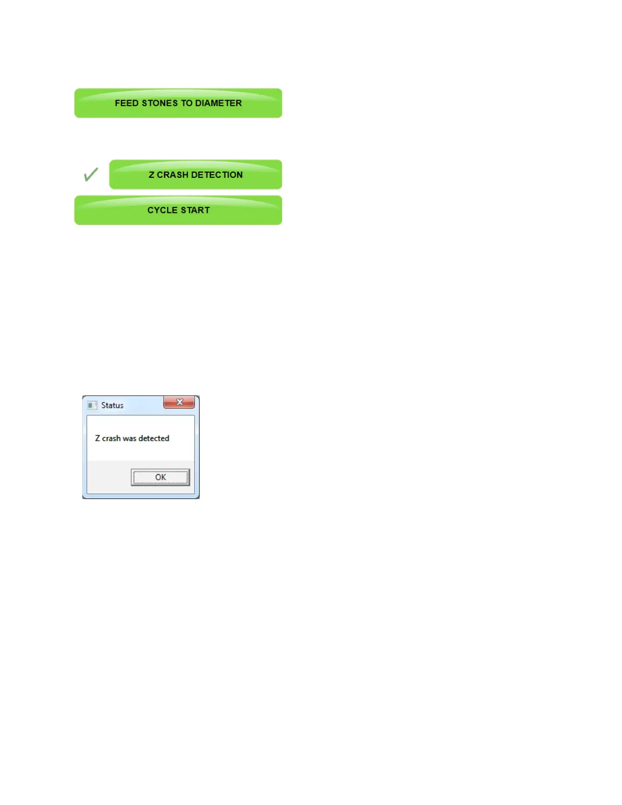 When this button is active touching it will cause the spindle motor to start and the stones to feed out until