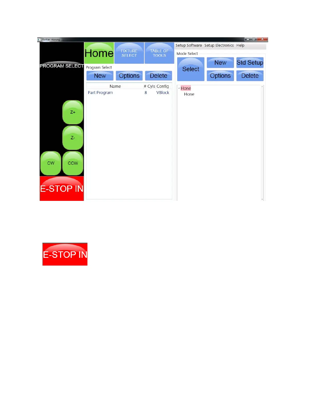 The Stop Machine button now reads E-STOP IN. It is now safe to work inside the