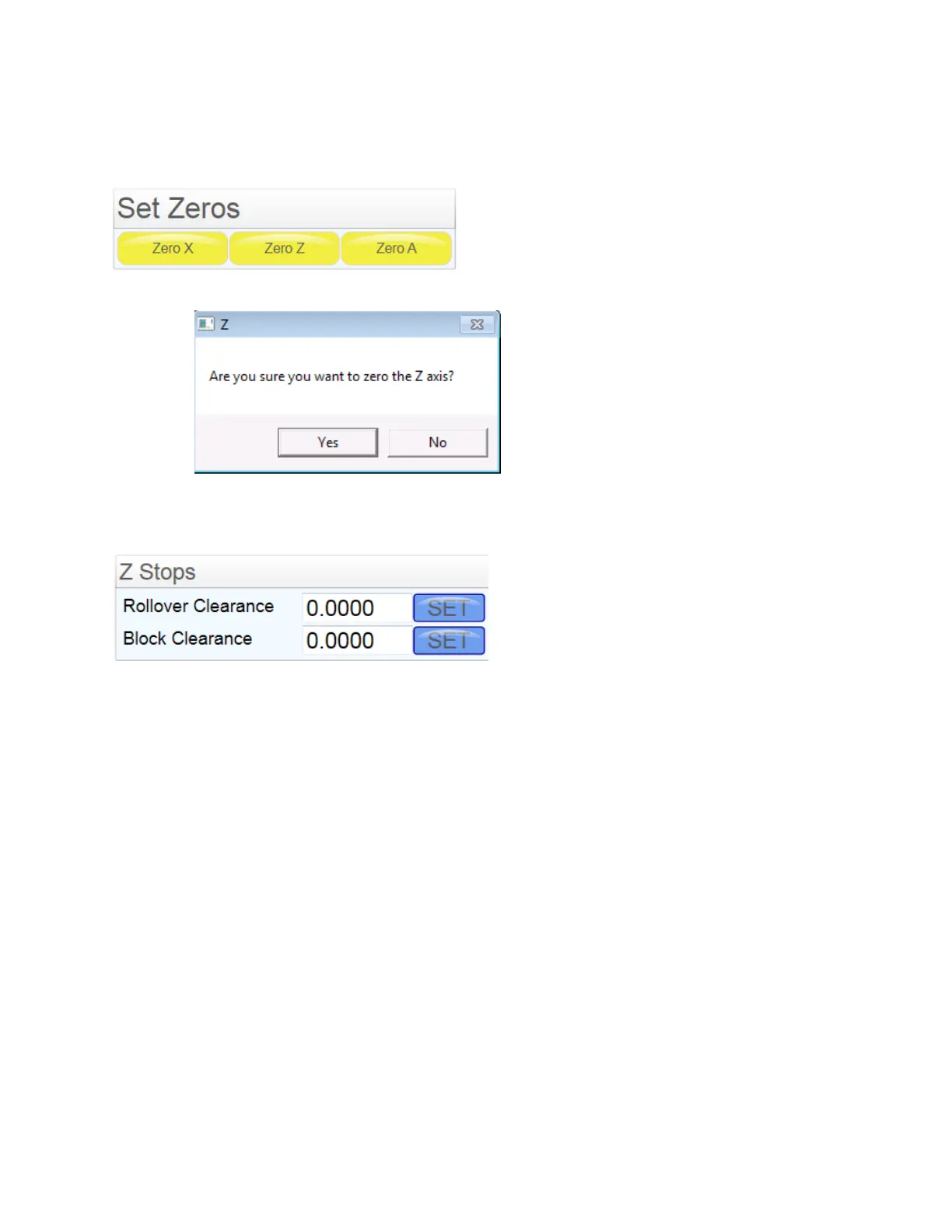 deck by 1-2 inches. In the Z Stops section touch the SET button that is in the same line as the Block
