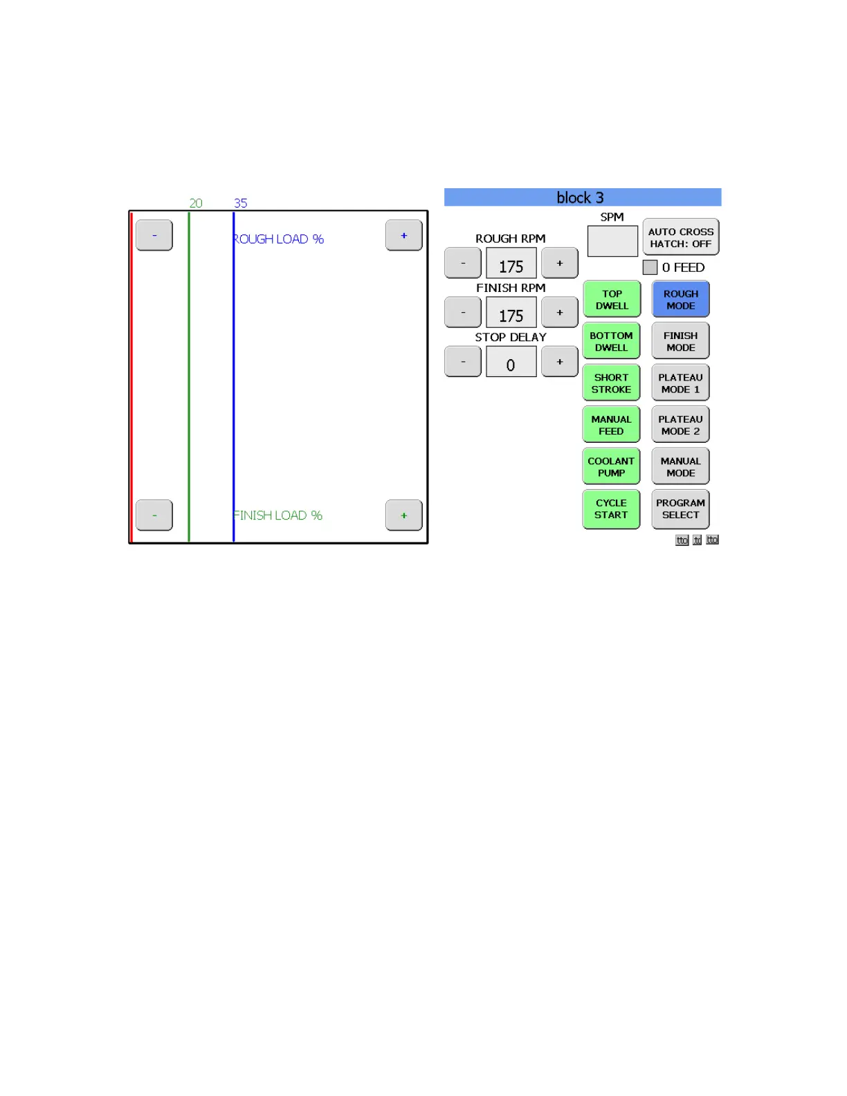 side of the screen is the active graph that shows in real time the stock removal of the hone stones.