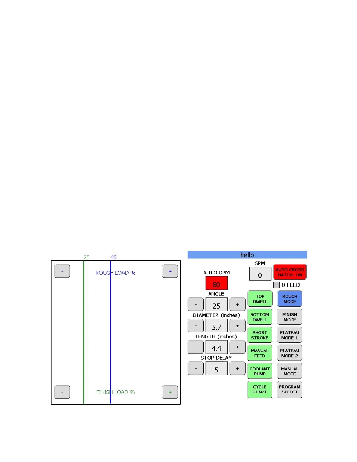 section has the rough load + and – buttons. The bottom section has the nish load + and – buttons.