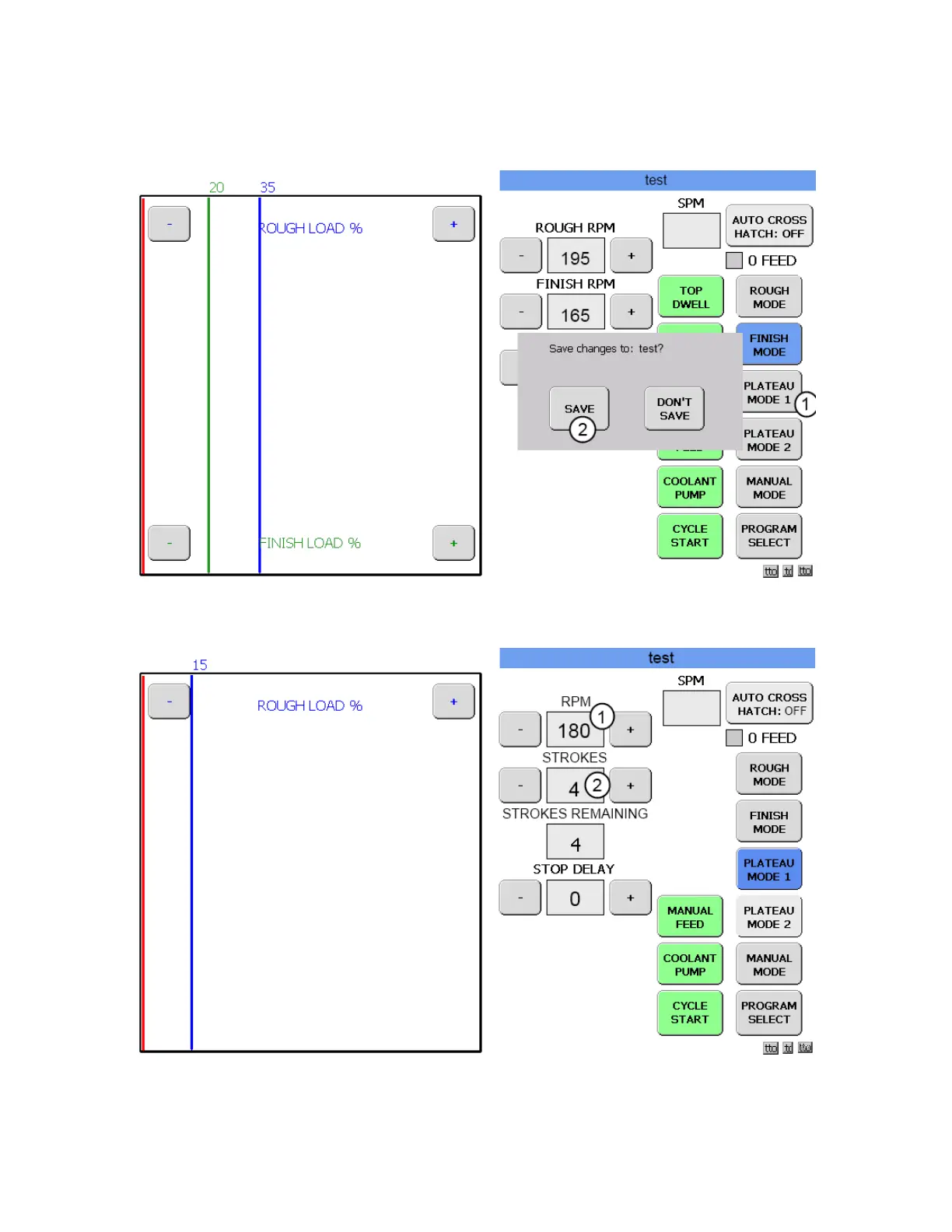 Go through the same process as in ROUGH MODE to set the LOAD and RPM values. Then touch the